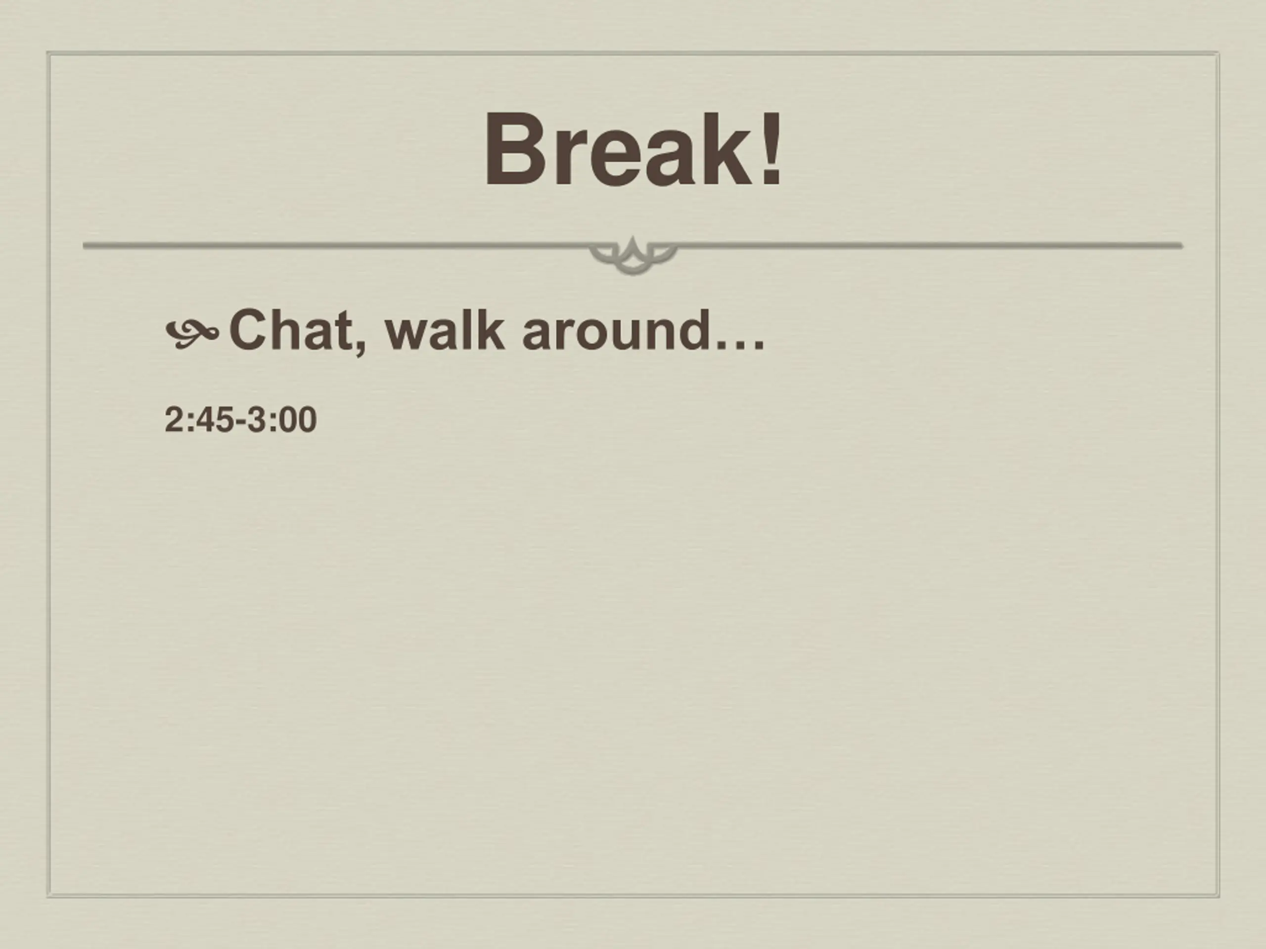 Break! Chat, walk around 2:45-3:00