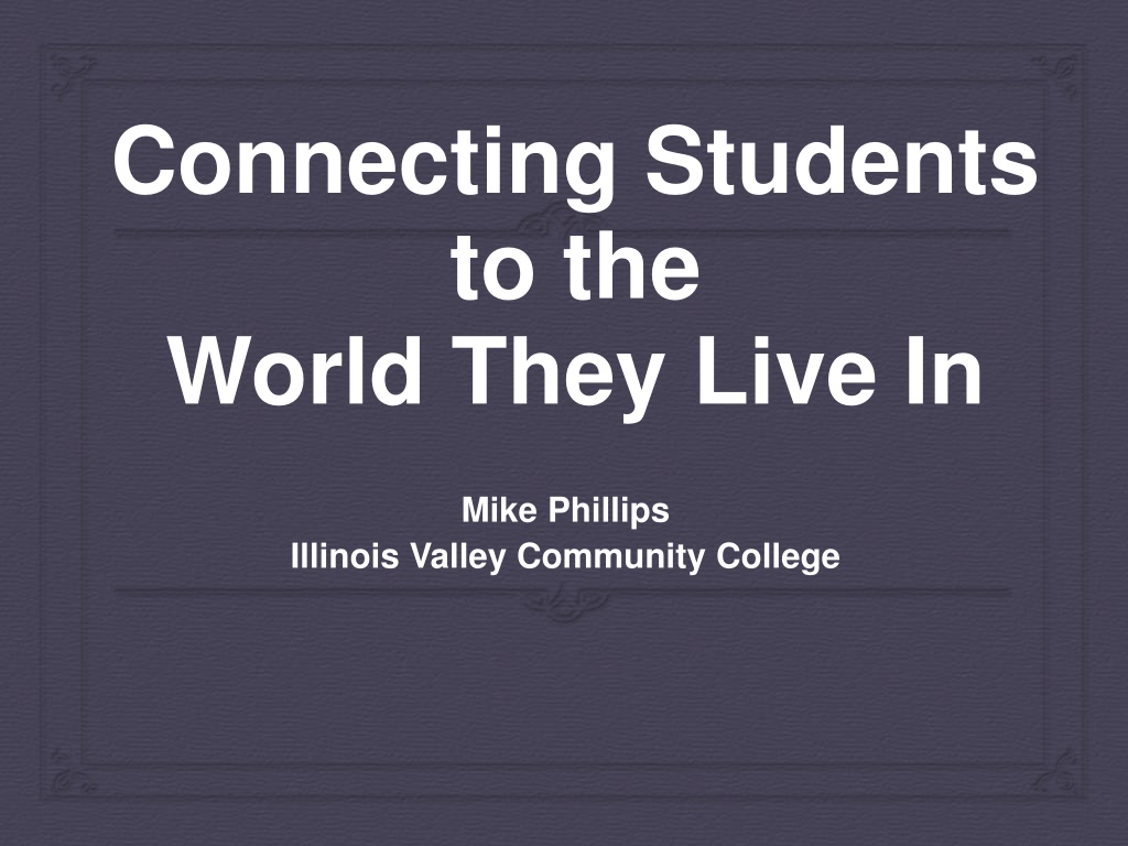 Connecting Students to the World They Live In Mike Phillips Illinois Valley Community College