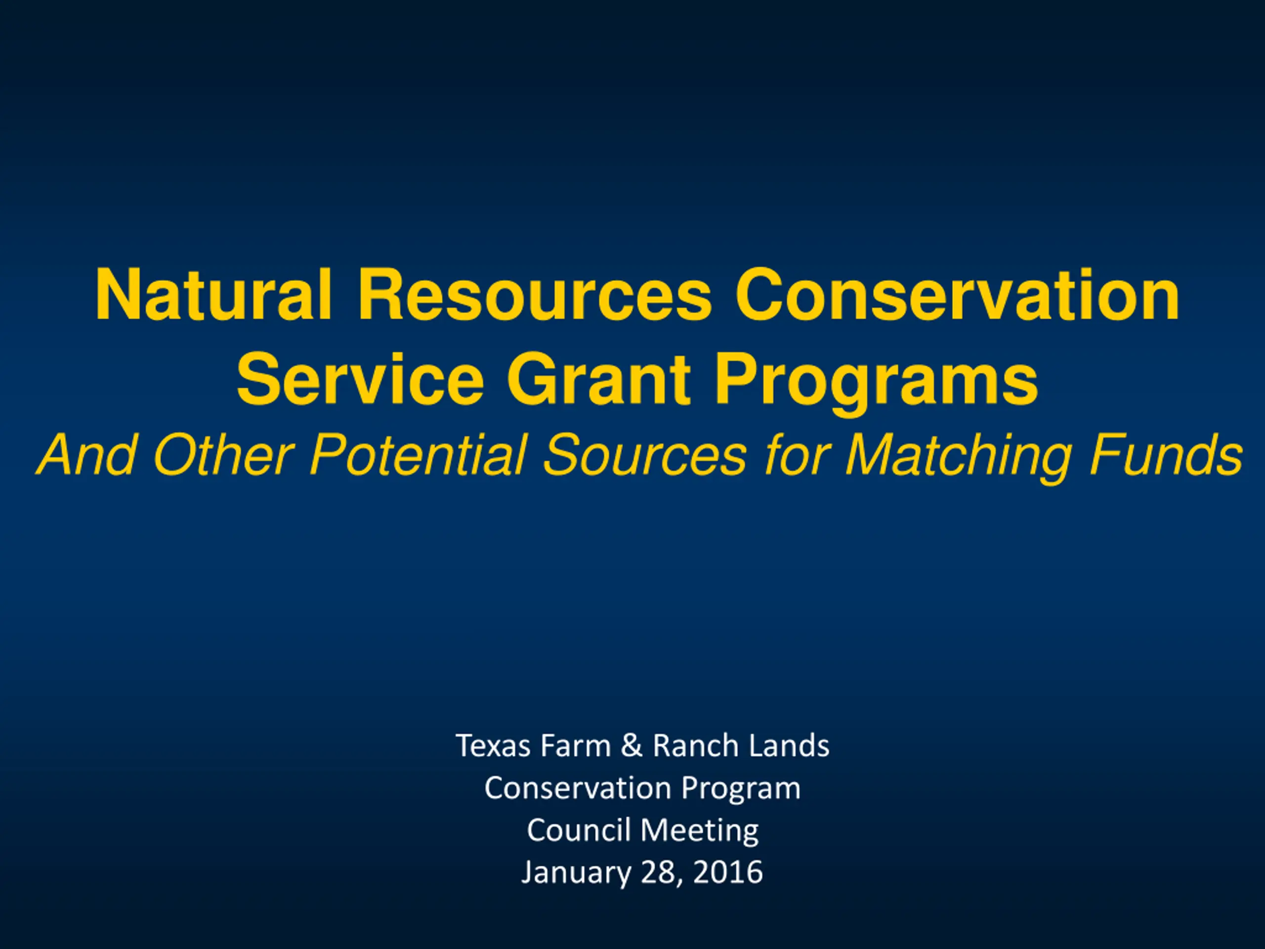 Natural Resources Conservation Service Grant Programs And Other Potential Sources for Matching Funds Texas Farm & Ranch Lands Conservation Program Council Meeting January 28, 2016