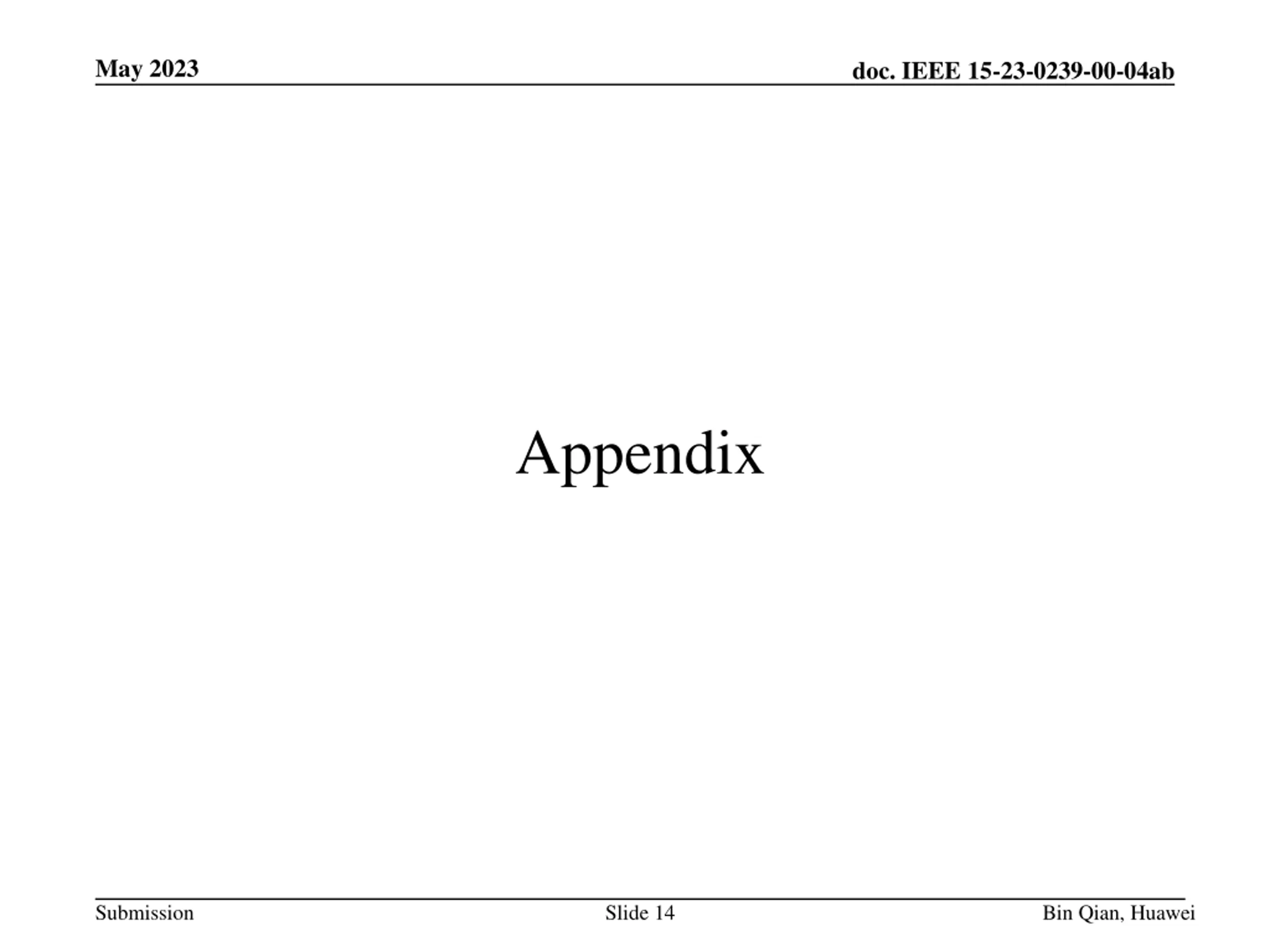May 2023 doc. IEEE 15-23-0239-00-04ab Appendix Submission Slide 14 Bin Qian, Huawei