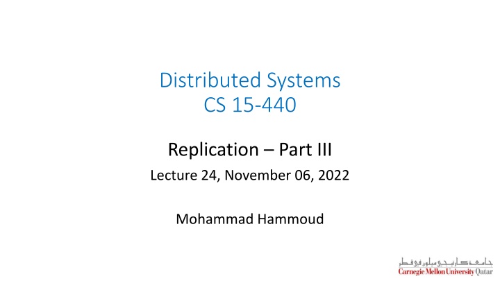 Distributed Systems CS 15-440 Replication Part III Lecture 24, November 06, 2022 Mohammad Hammoud