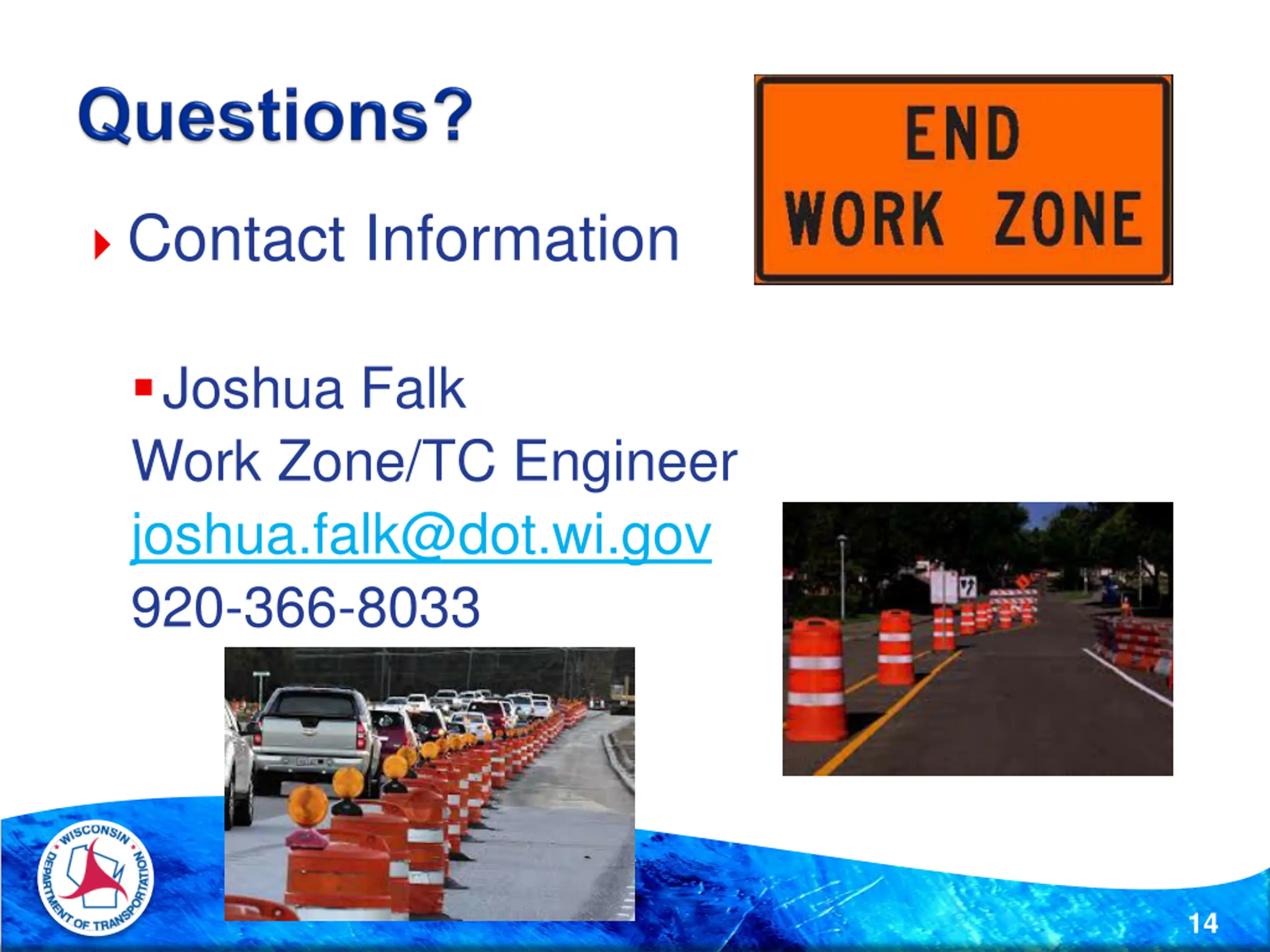 Contact Information Joshua Falk Work Zone/TC Engineer joshua.falk@dot.wi.gov 920-366-8033 14