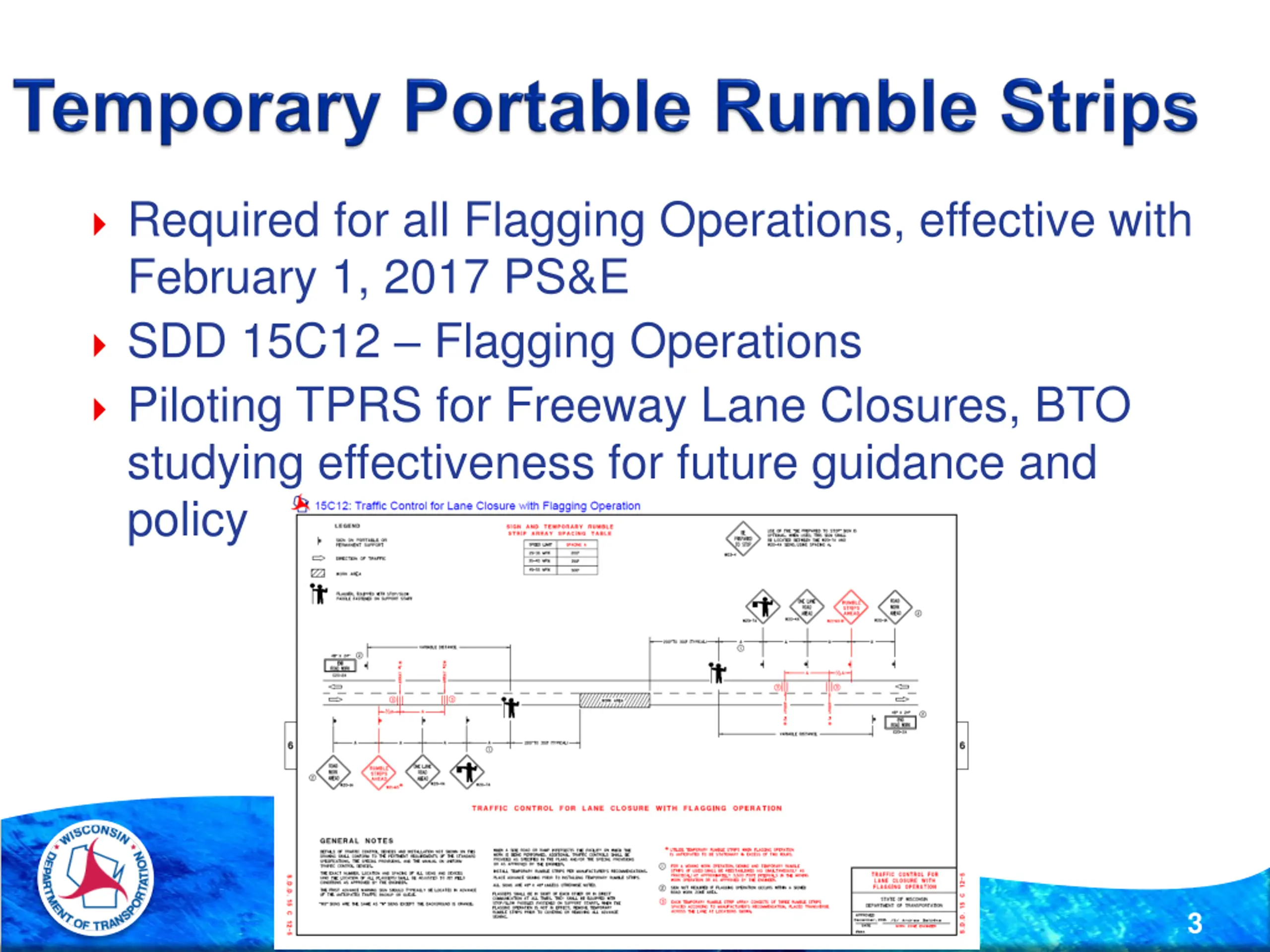 Required for all Flagging Operations, effective with February 1, 2017 PS&E SDD 15C12 Flagging Operations Piloting TPRS for Freeway Lane Closures, BTO studying effectiveness for future guidance and policy 3
