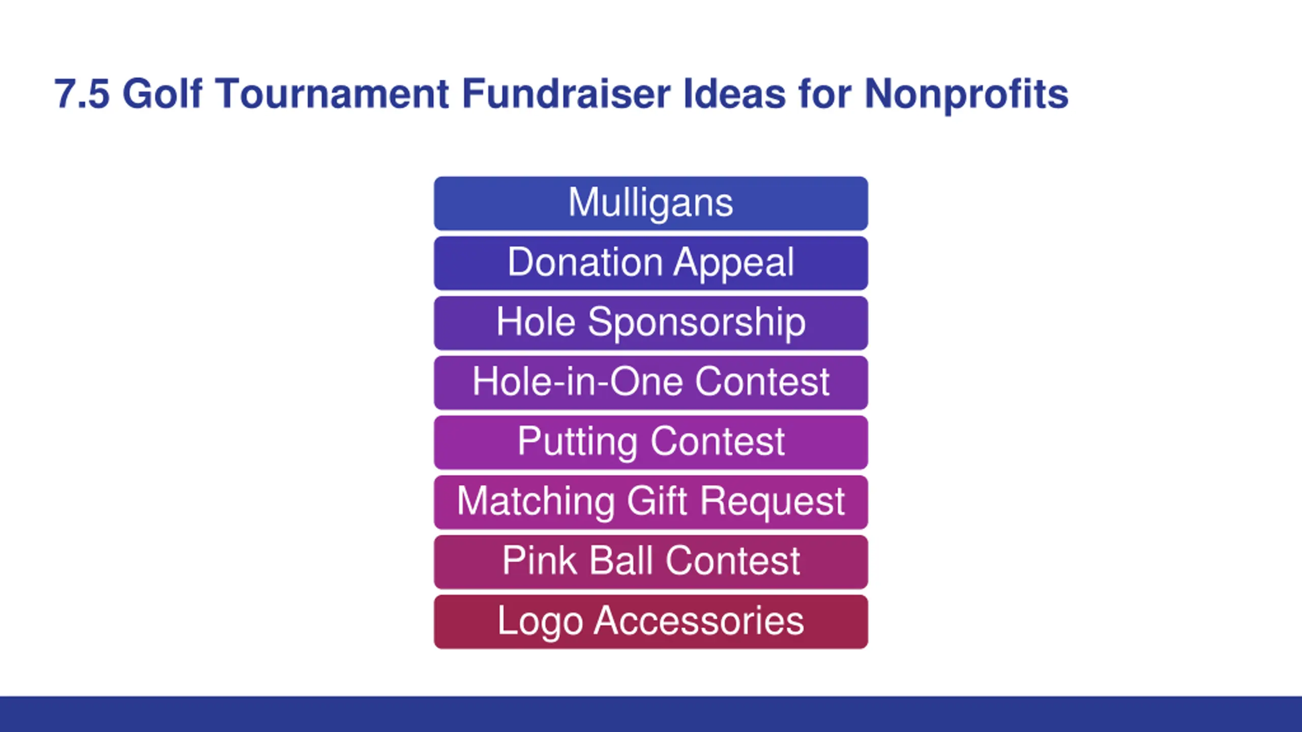 7.5 Golf Tournament Fundraiser Ideas for Nonprofits Mulligans Donation Appeal Hole Sponsorship Hole-in-One Contest Putting Contest Matching Gift Request Pink Ball Contest Logo Accessories