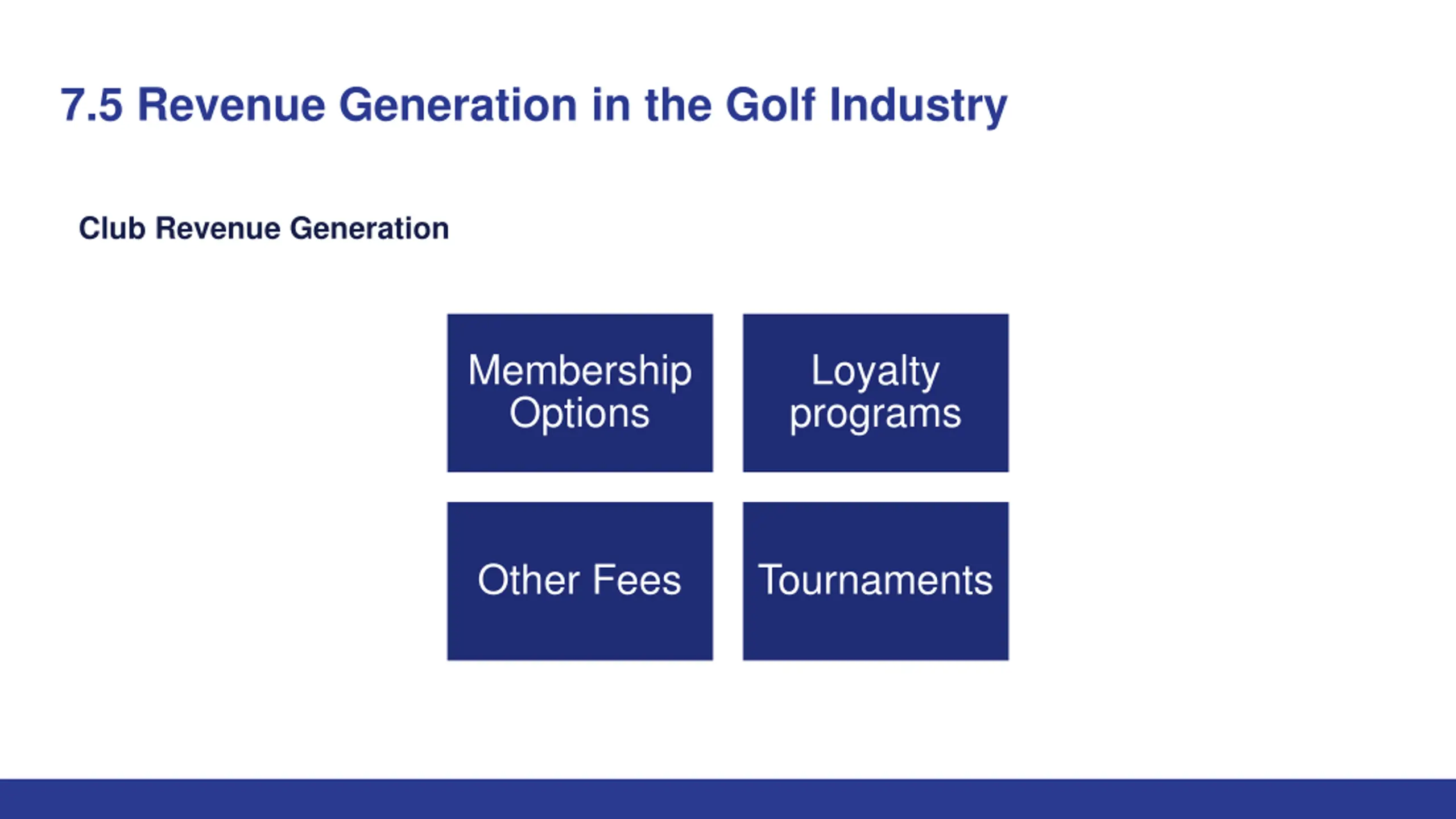 7.5 Revenue Generation in the Golf Industry Club Revenue Generation Membership Options Loyalty programs Other Fees Tournaments
