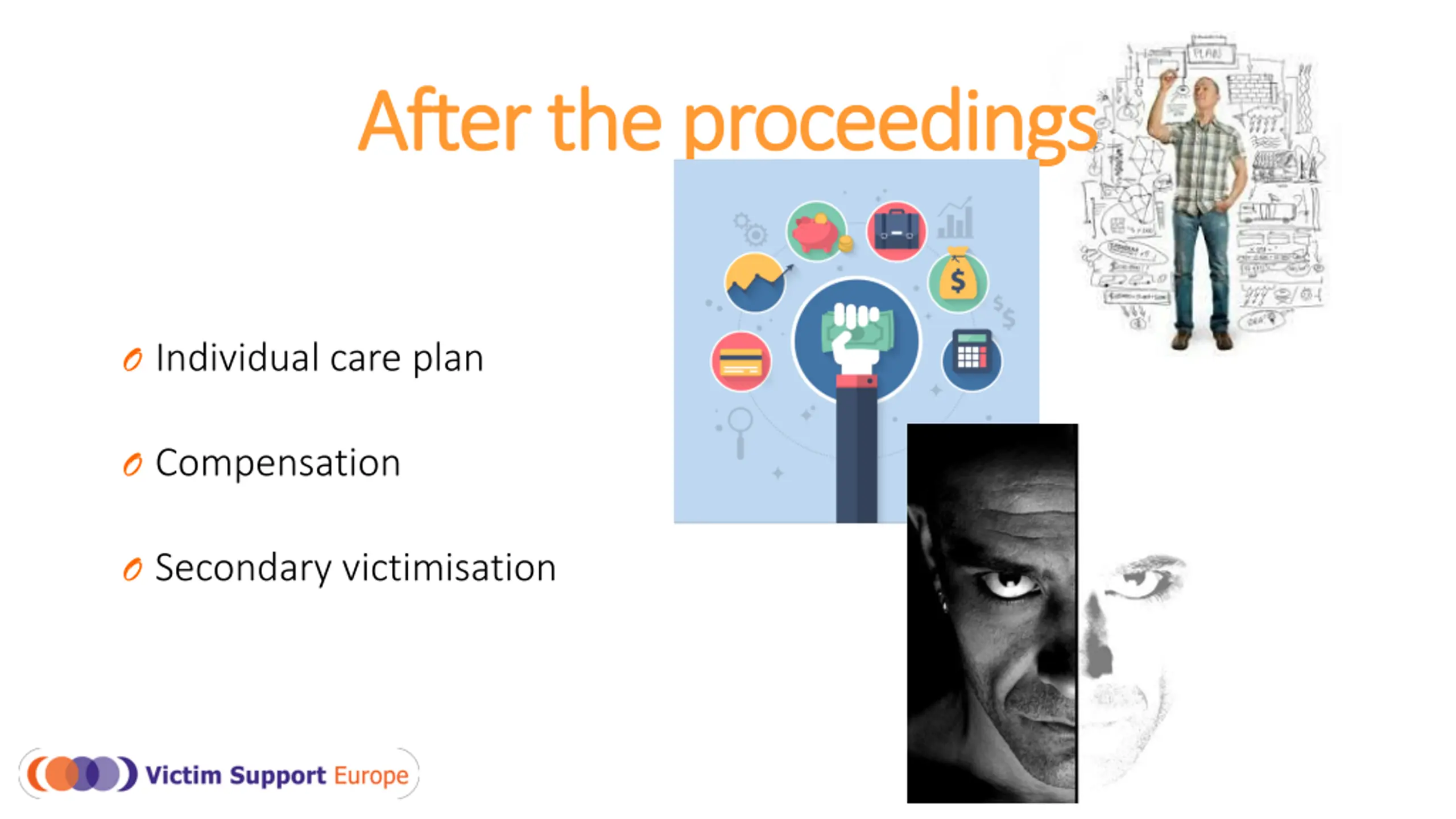 After the proceedings After the proceedings O Individual care plan O Compensation O Secondary victimisation