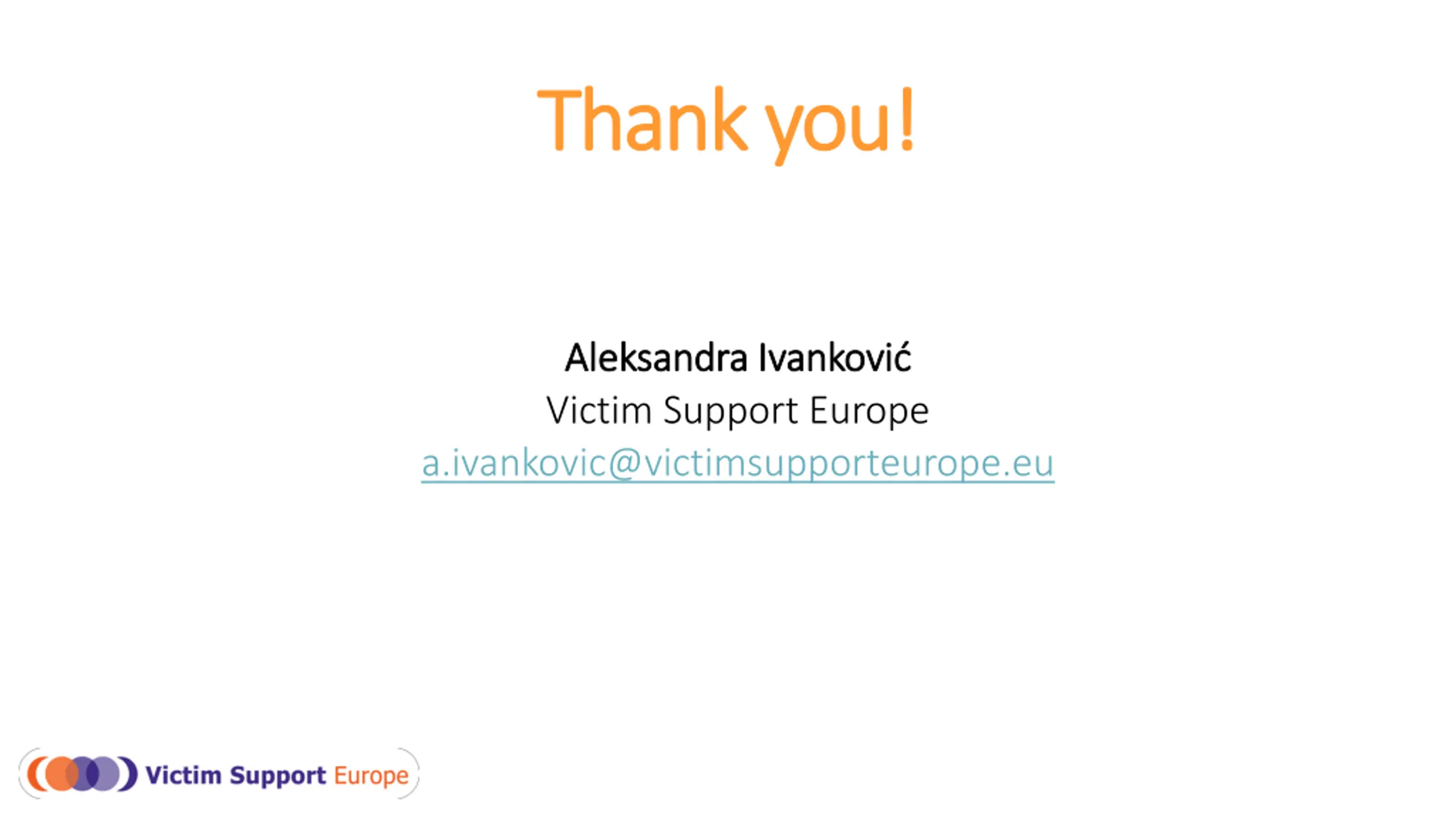 Thank you! Thank you! Aleksandra Ivankovi Aleksandra Ivankovi Victim Support Europe a.ivankovic@victimsupporteurope.eu