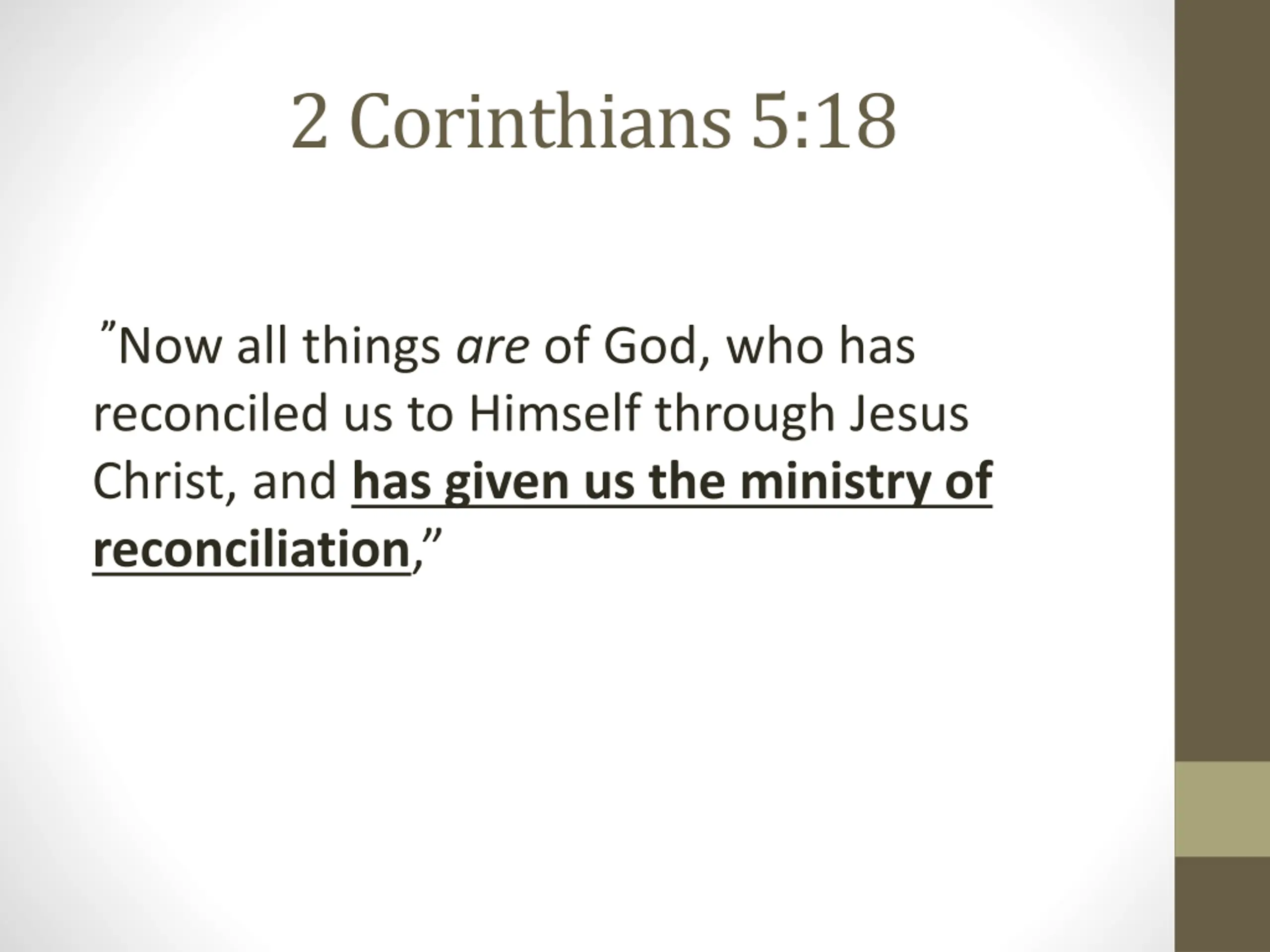 2 Corinthians 5:18 Now all things are of God, who has reconciled us to Himself through Jesus Christ, and has given us the ministry of reconciliation,