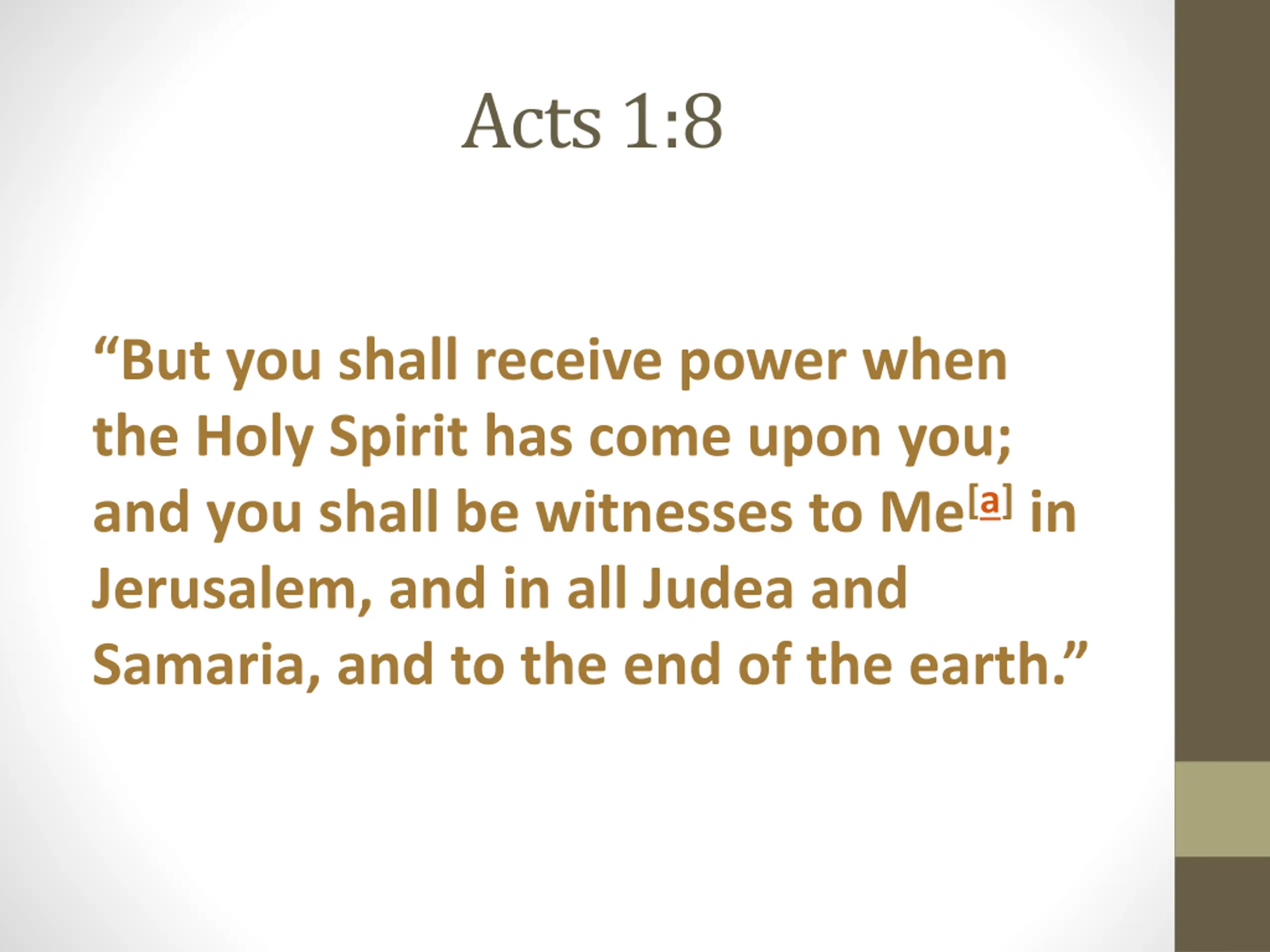 Acts 1:8 But you shall receive power when the Holy Spirit has come upon you; and you shall be witnesses to Me[a]in Jerusalem, and in all Judea and Samaria, and to the end of the earth.