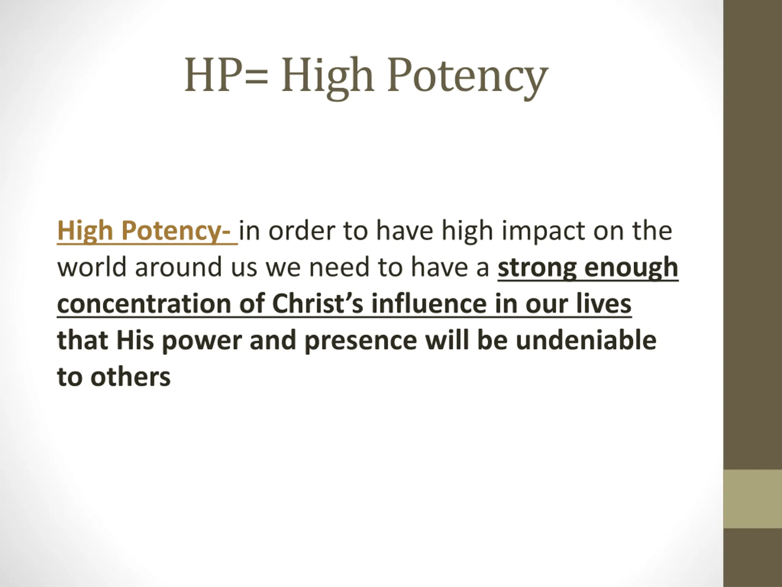 HP= High Potency High Potency- in order to have high impact on the world around us we need to have a strong enough concentration of Christ s influence in our lives that His power and presence will be undeniable to others