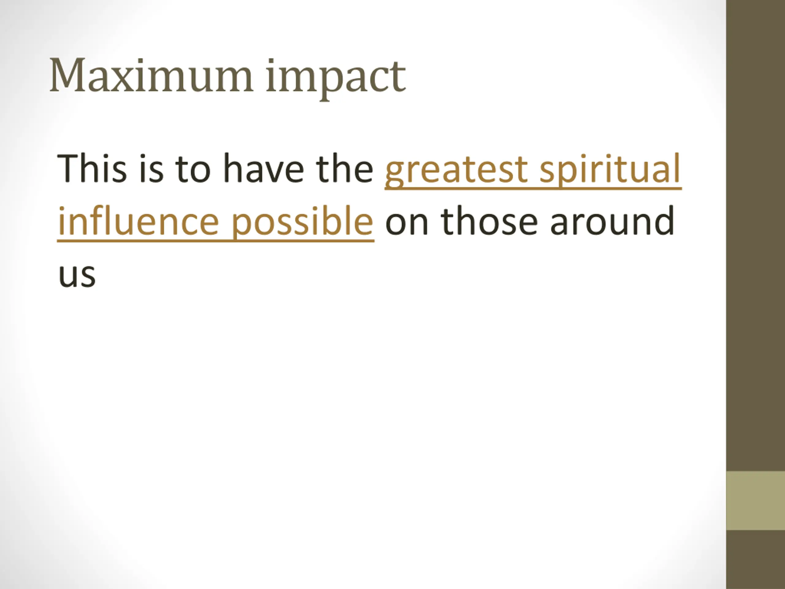 Maximum impact This is to have the greatest spiritual influence possible on those around us