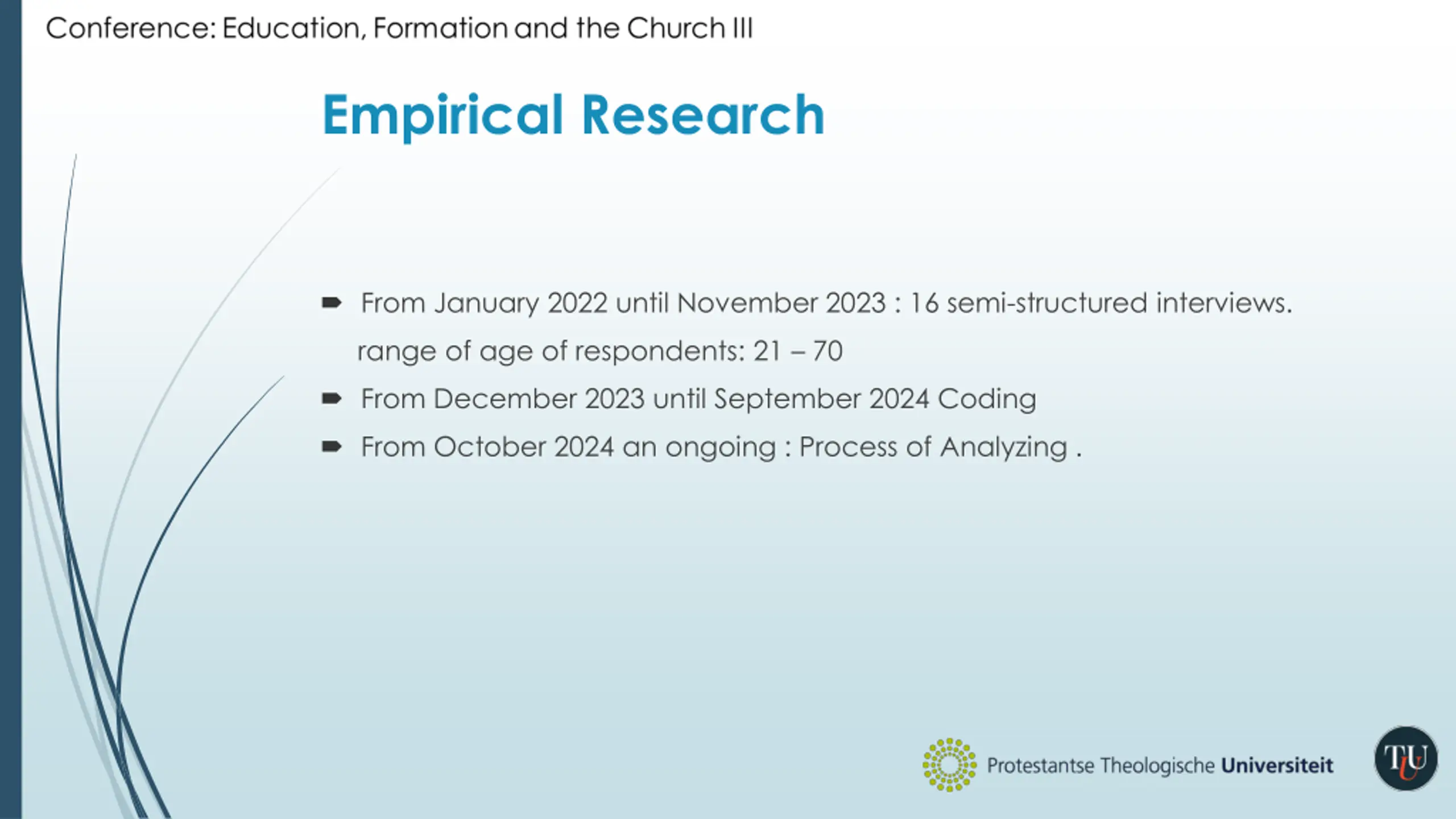 - Empirical Research From January 2022 until November 2023 : 16 semi-structured interviews. range of age of respondents: 21 70 From December 2023 until September 2024 Coding From October 2024 an ongoing : Process of Analyzing .