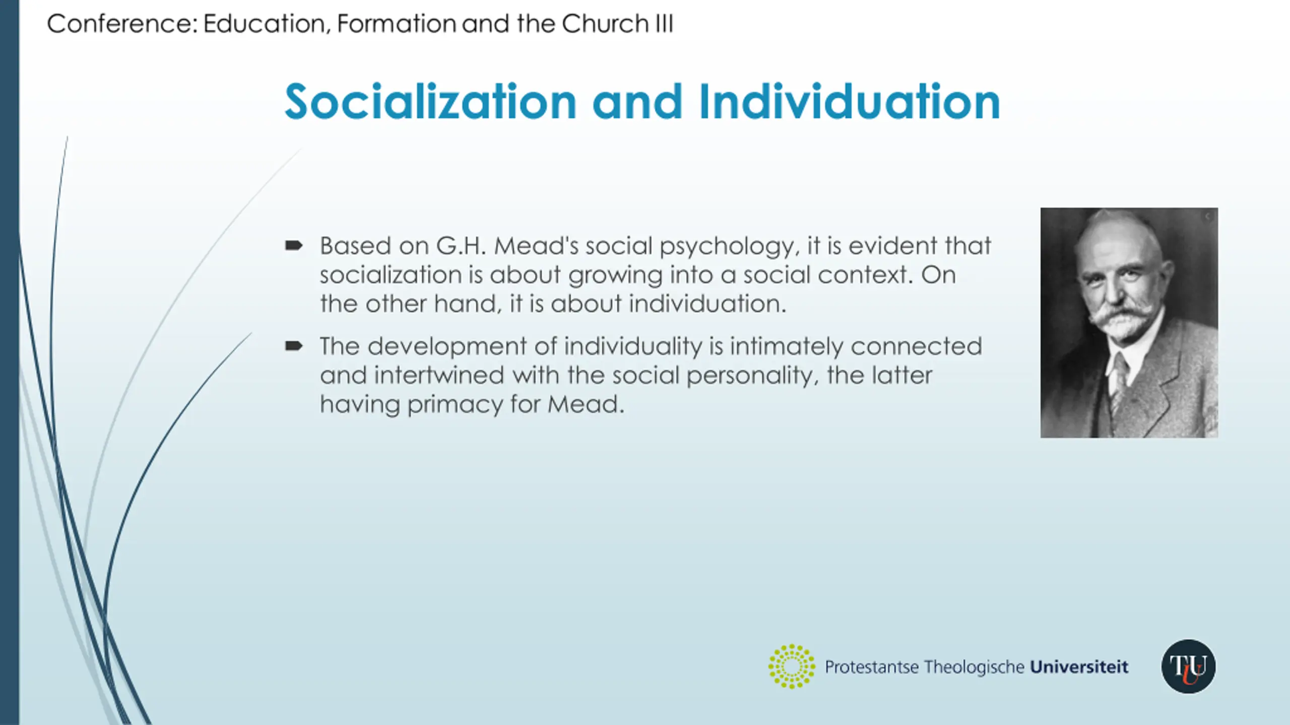 - Socialization and Individuation Based on G.H. Mead's social psychology, it is evident that socialization is about growing into a social context. On the other hand, it is about individuation. The development of individuality is intimately connected and intertwined with the social personality, the latter having primacy for Mead.
