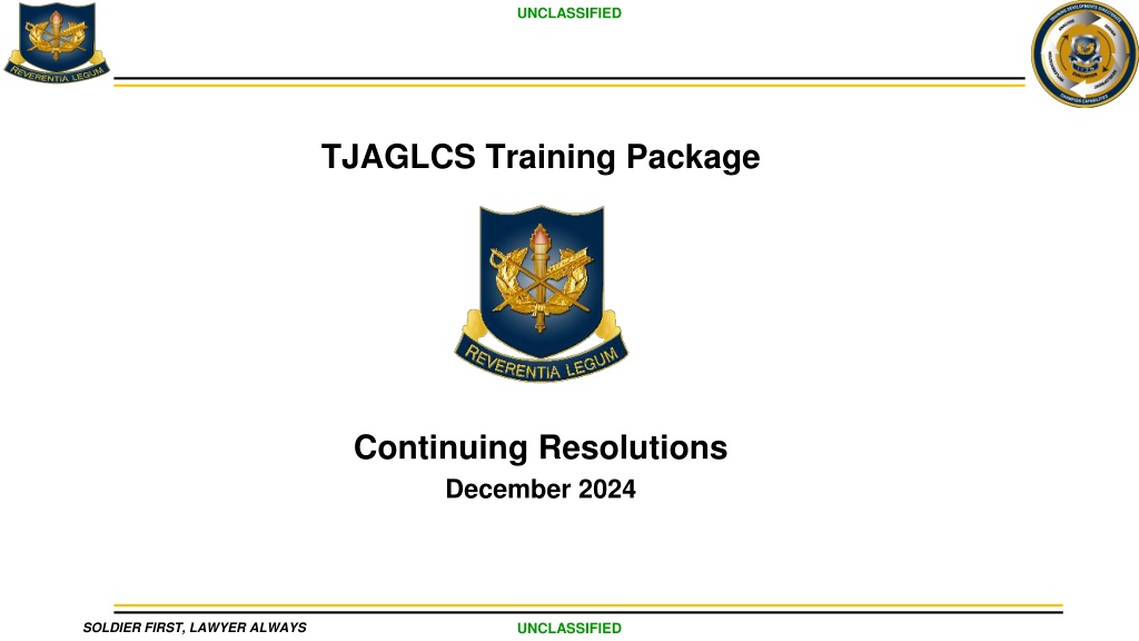 UNCLASSIFIED TJAGLCS Training Package Continuing Resolutions December 2024 SOLDIER FIRST, LAWYER ALWAYS UNCLASSIFIED