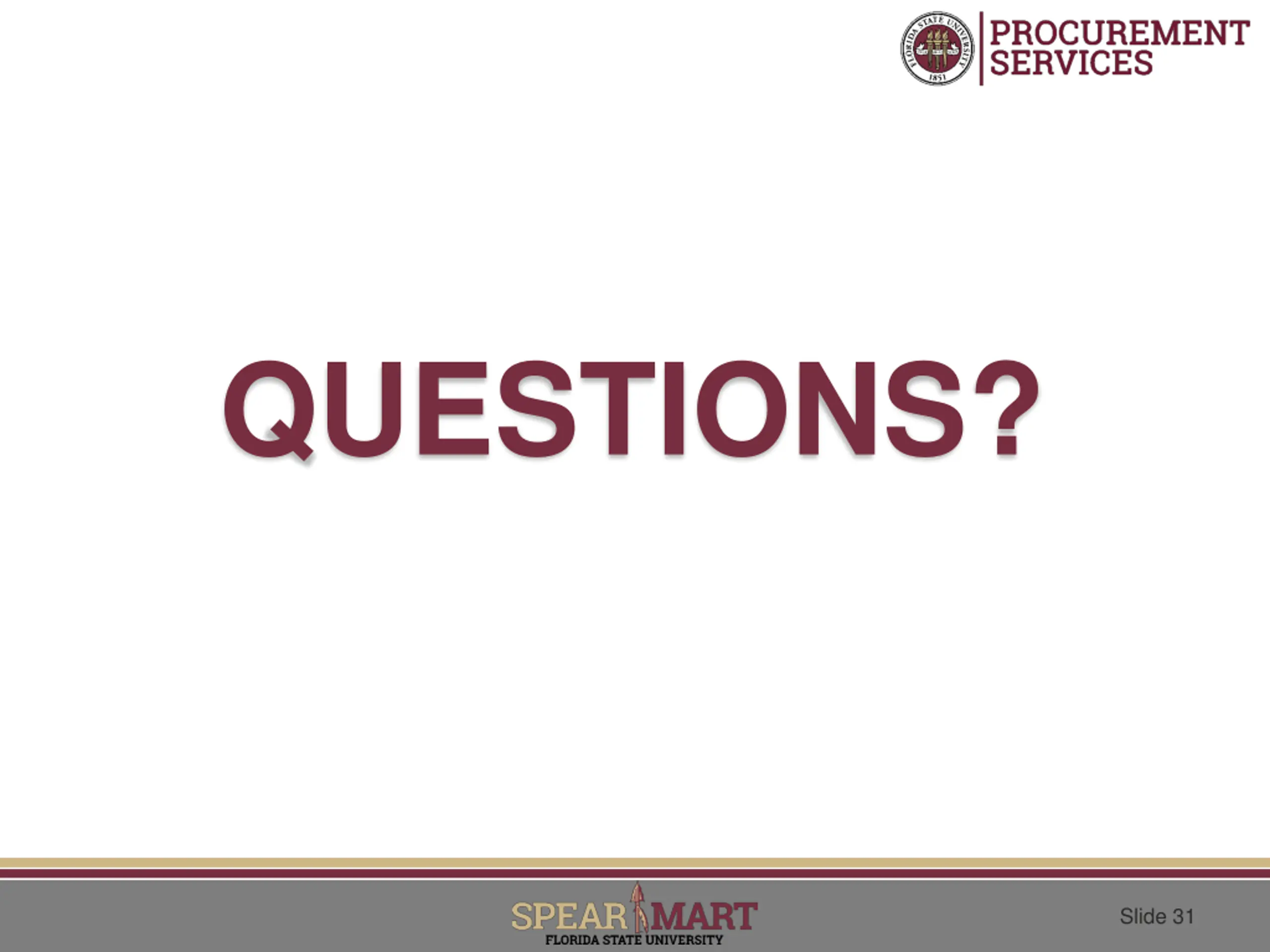 QUESTIONS? Slide 31