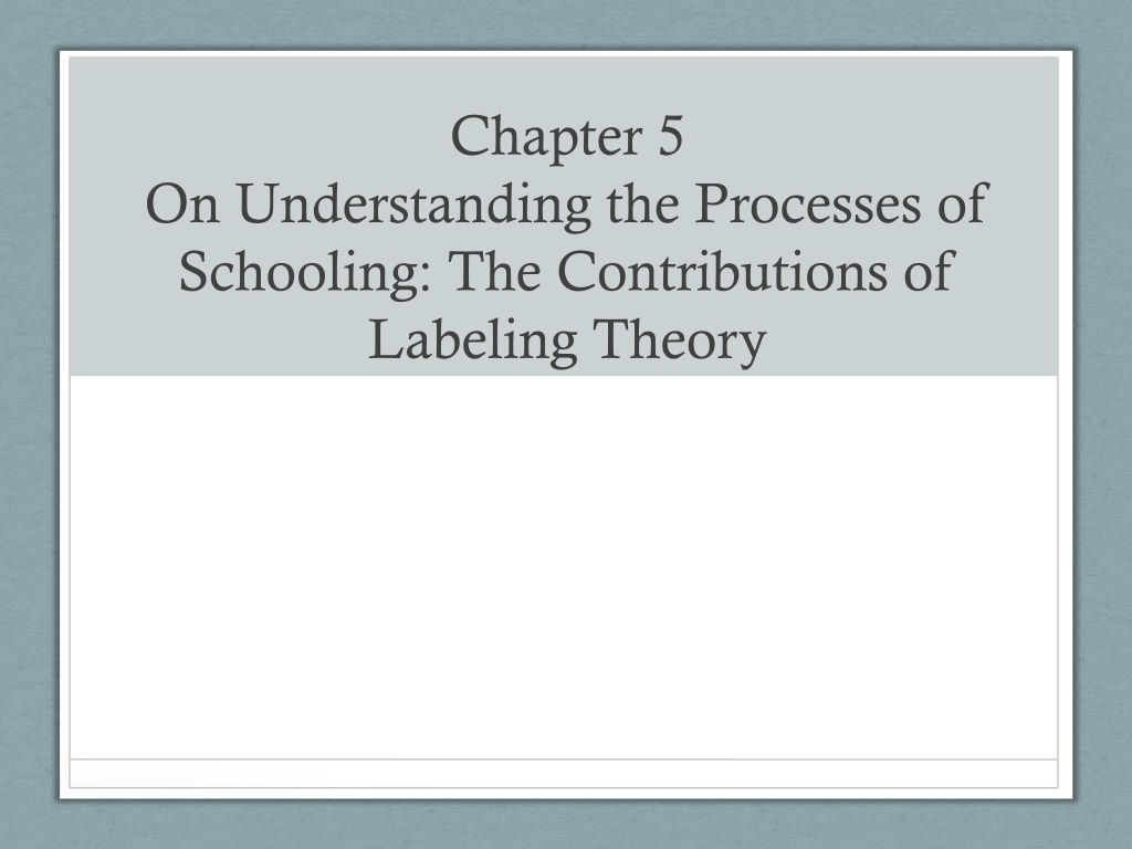 Chapter 5 On Understanding the Processes of Schooling: The Contributions of Labeling Theory