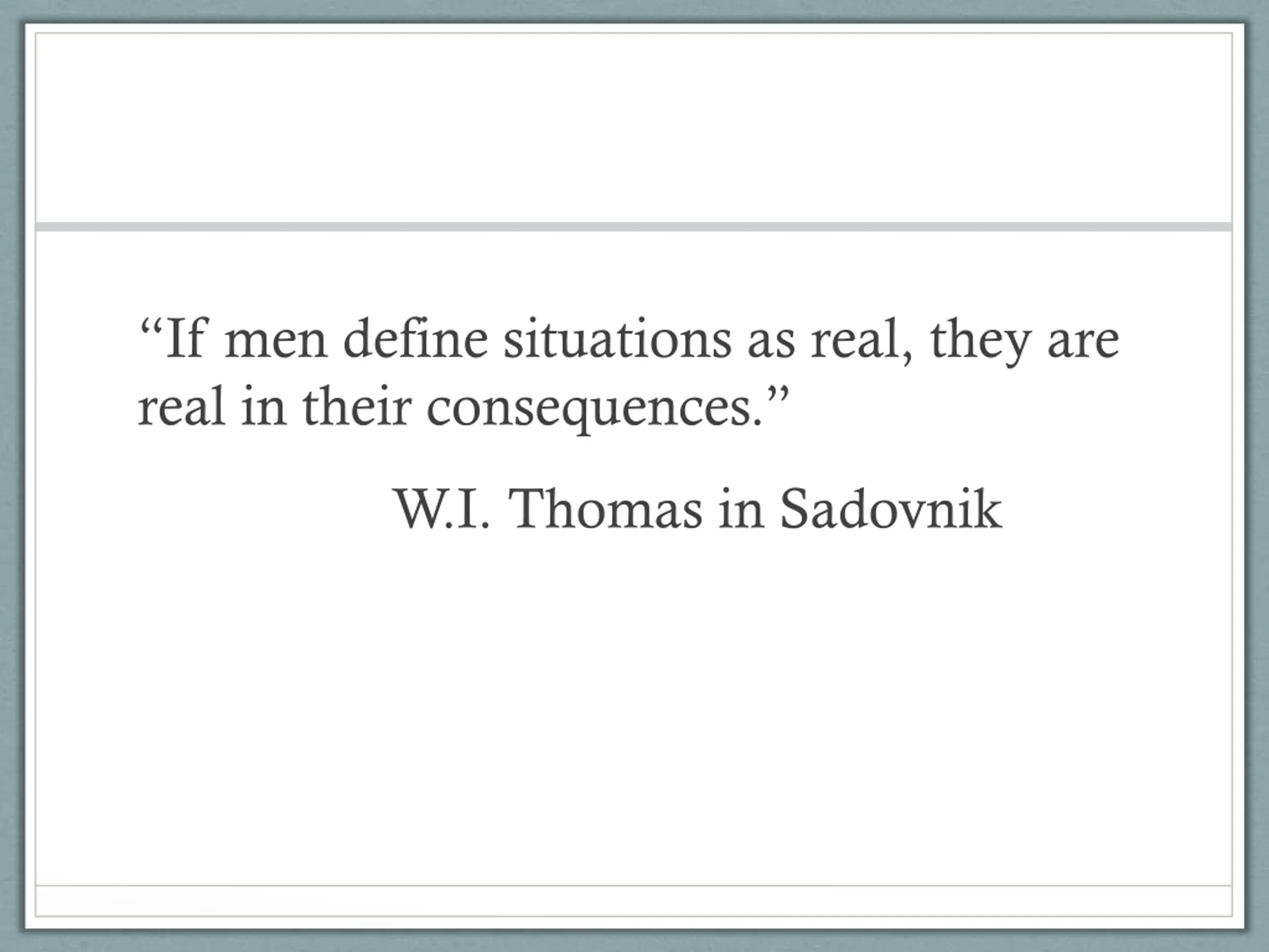 If men define situations as real, they are real in their consequences. W.I. Thomas in Sadovnik