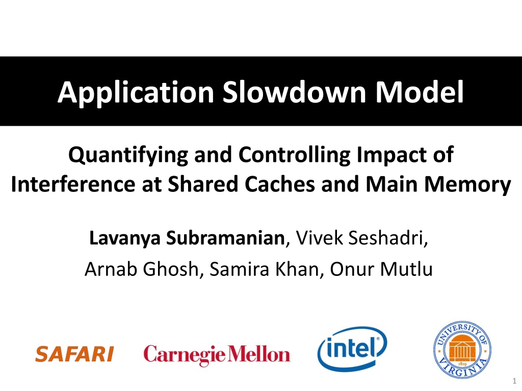 Explore the quantification and control of performance impact from shared resource interference at caches and main memory. Learn how to measure and manage application slowdowns caused by resource contention, aiming for high and predictable performance. Methods include estimating cache access rates, allocating cache capacity and memory bandwidth, and coordinating cache and memory management.