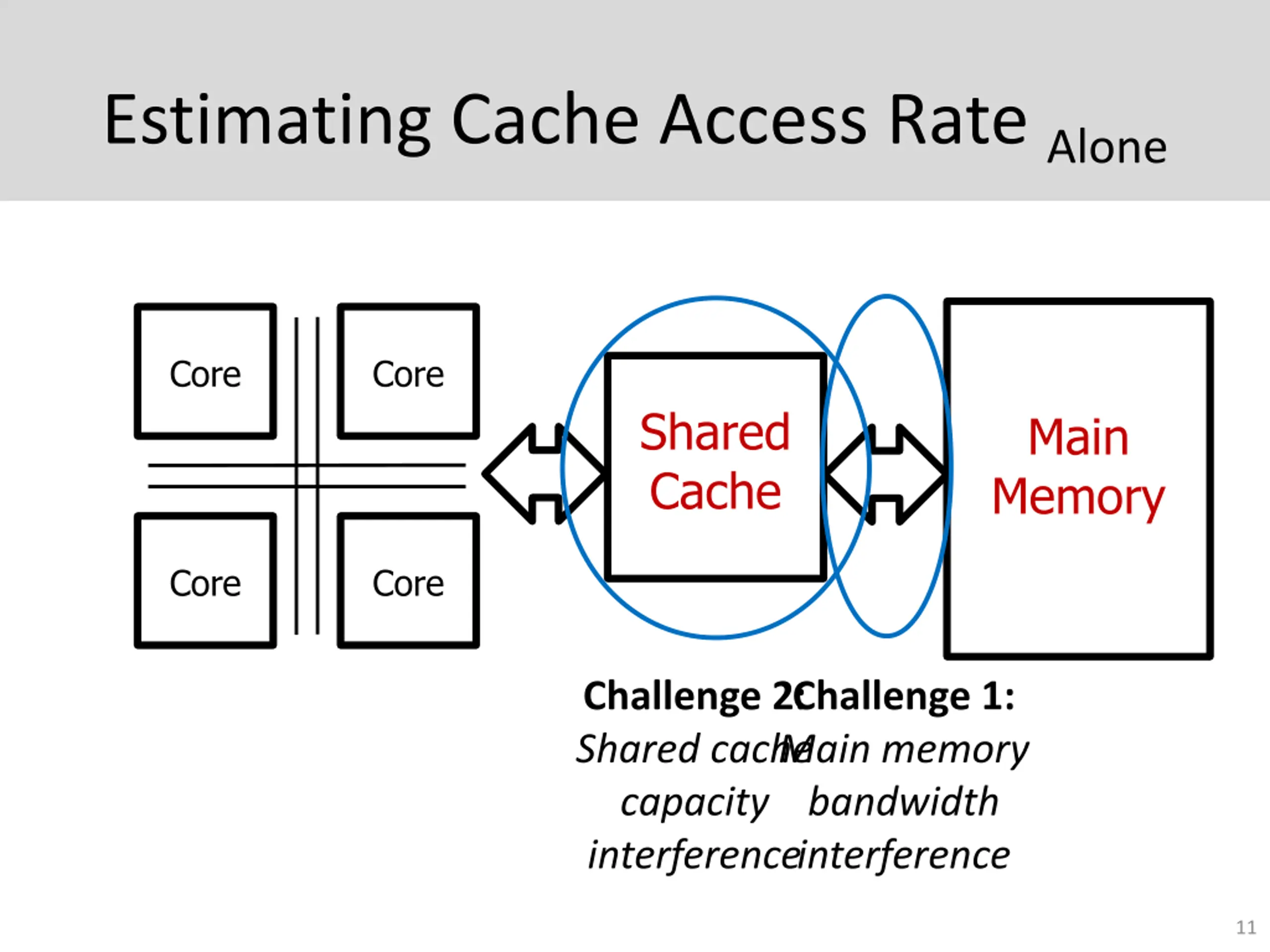 Outline 1. Quantify Slowdown Key Observation Estimating Cache Access Rate Alone ASM: Putting it All Together Evaluation 2. Control Slowdown Slowdown-aware Cache Capacity Allocation Slowdown-aware Memory Bandwidth Allocation Coordinated Cache/Memory Management 10