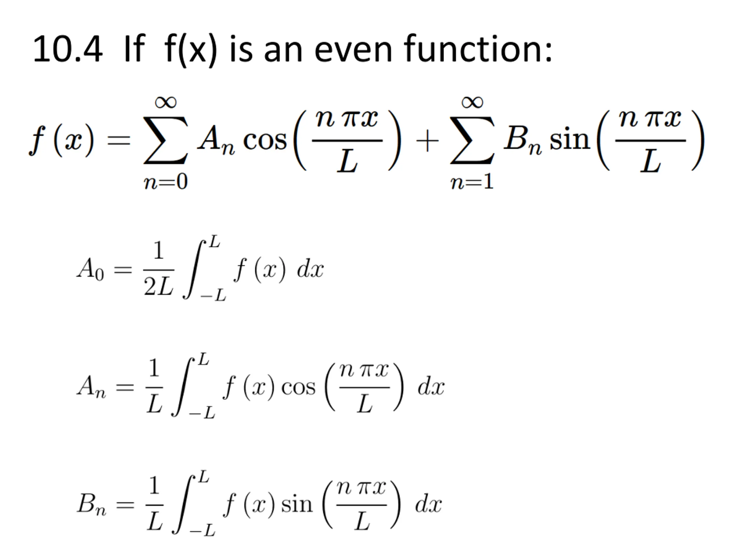 10.4 If f(x) is an even function: Fourier cosine series