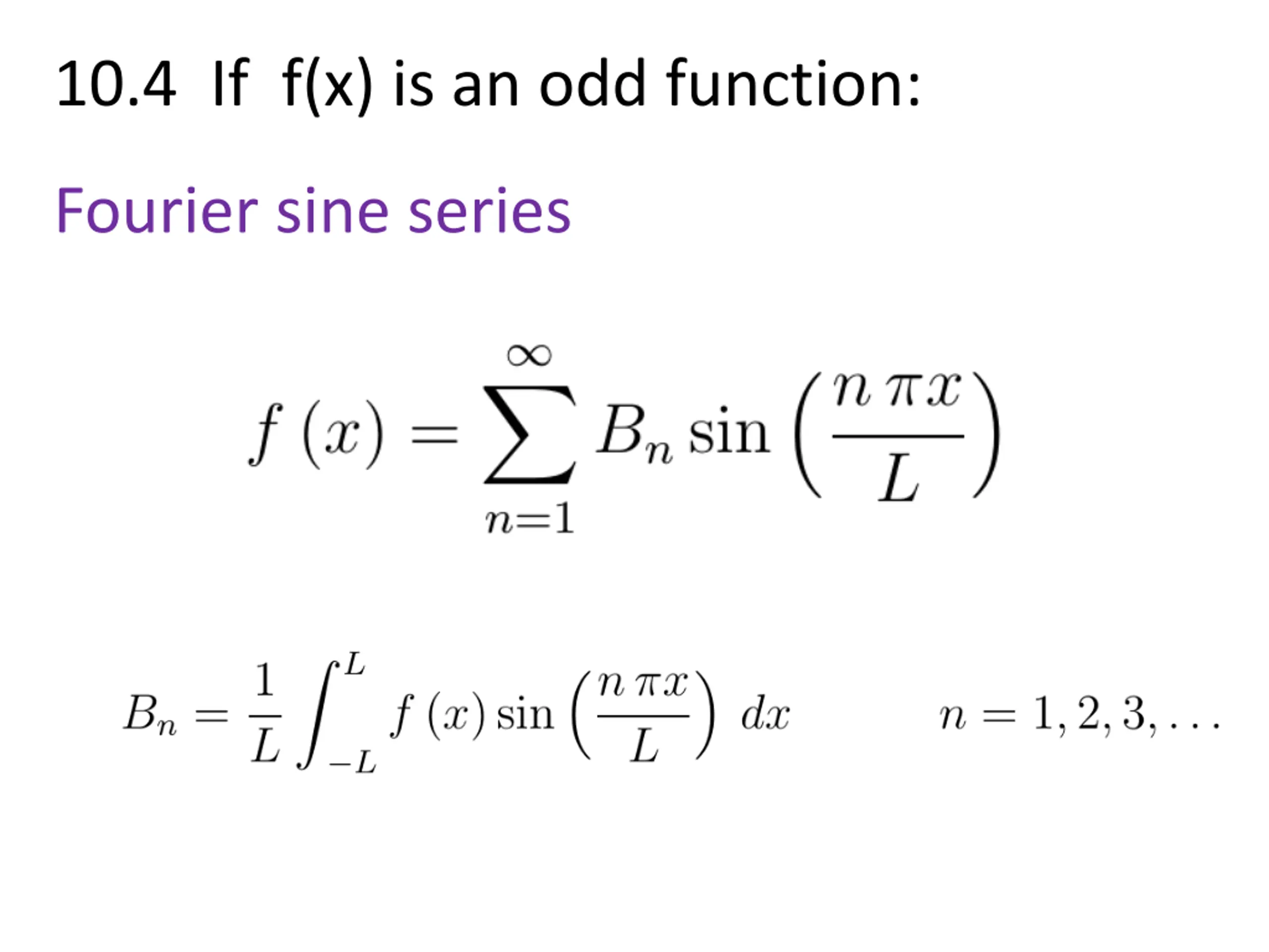 10.4 If f(x) is an odd function: Fourier sine series
