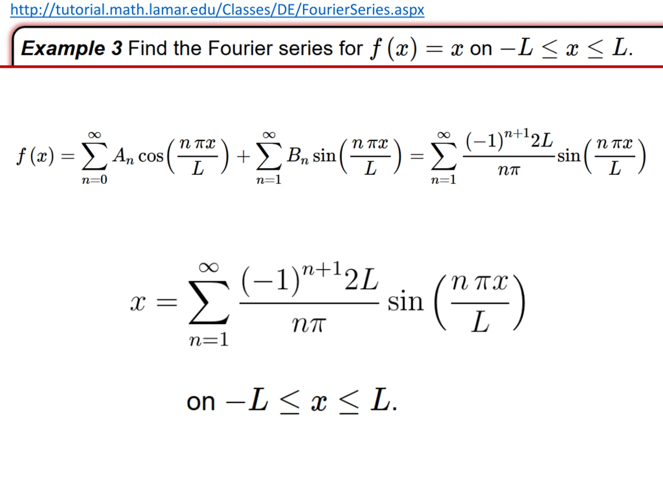 http://tutorial.math.lamar.edu/Classes/DE/FourierSeries.aspx