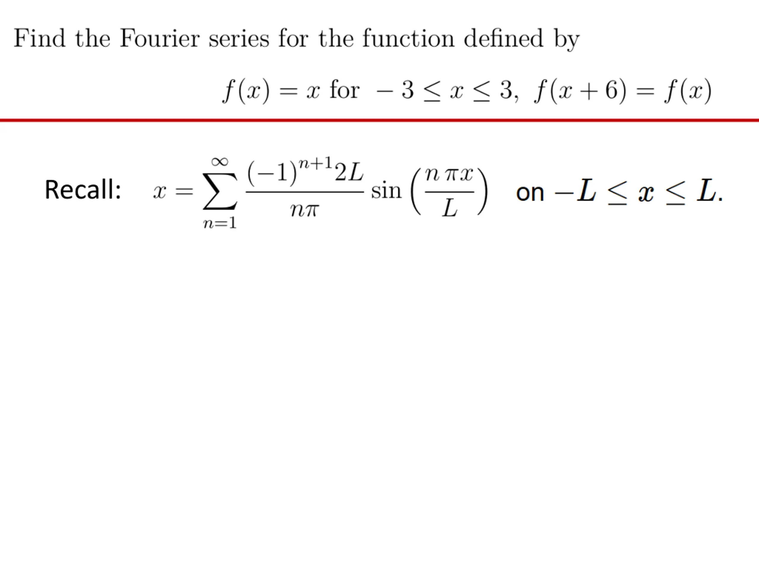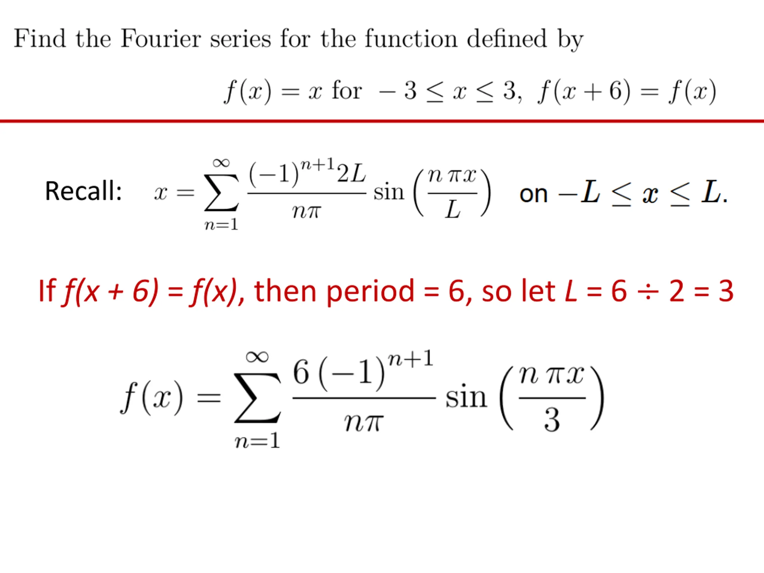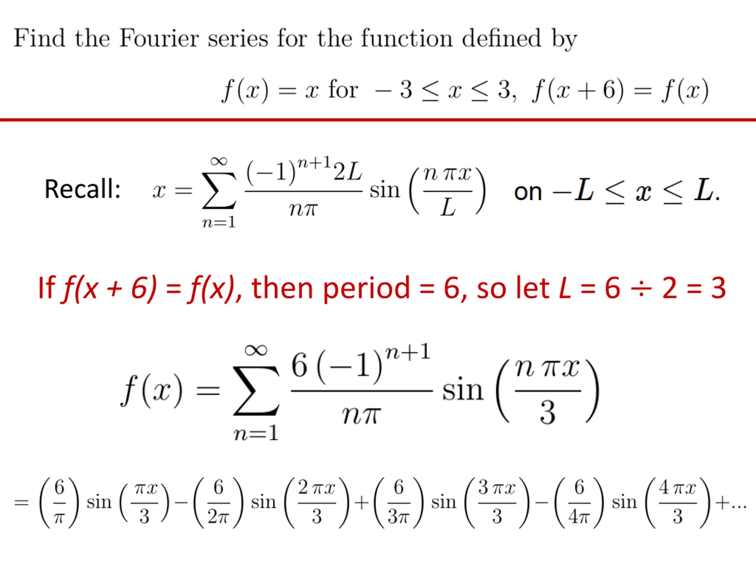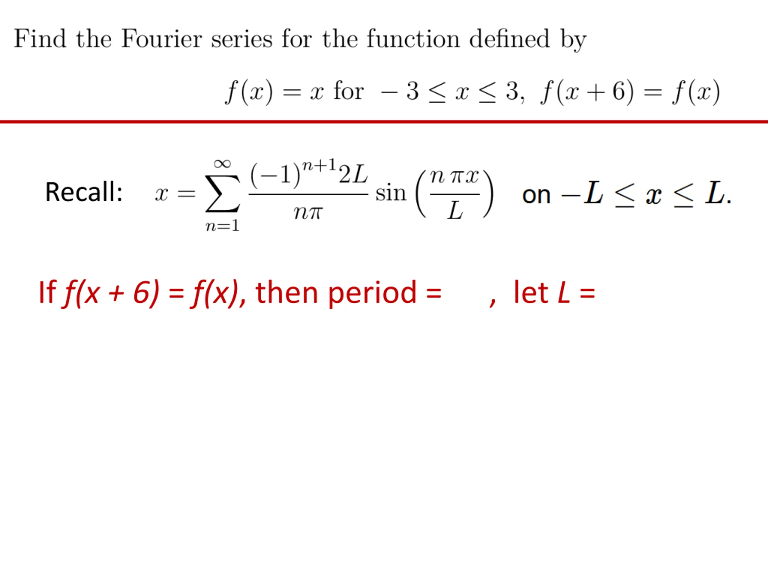Recall: If f(x + 6) = f(x), then period = 6, so let L = 6 2 = 3