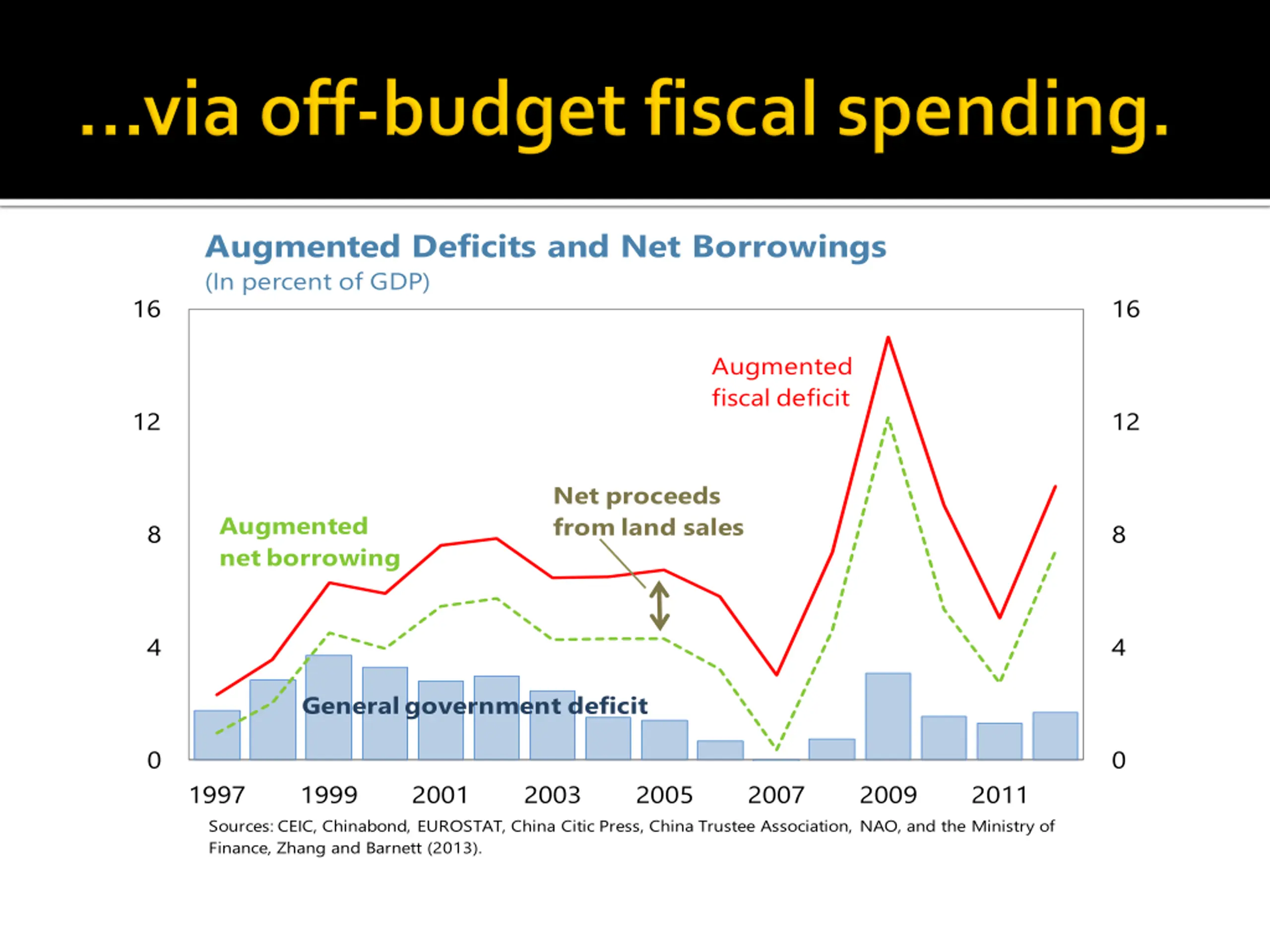 Augmented Deficits and Net Borrowings (In percent of GDP) 16 16 Augmented fiscal deficit 12 12 Net proceeds from land sales Augmented net borrowing 8 8 4 4 General government deficit 0 0 1997 Sources: CEIC, Chinabond, EUROSTAT, China Citic Press, China Trustee Association, NAO, and the Ministry of Finance, Zhang and Barnett (2013). 1999 2001 2003 2005 2007 2009 2011