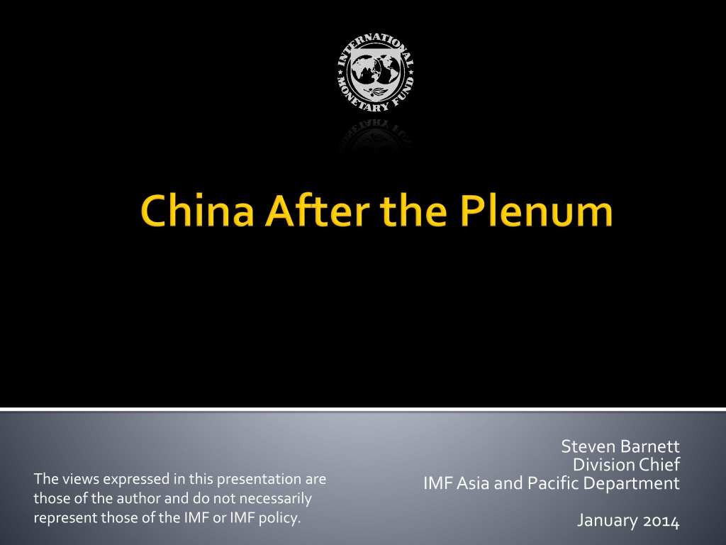 Steven Barnett Division Chief The views expressed in this presentation are those of the author and do not necessarily represent those of the IMF or IMF policy. IMF Asia and Pacific Department January 2014