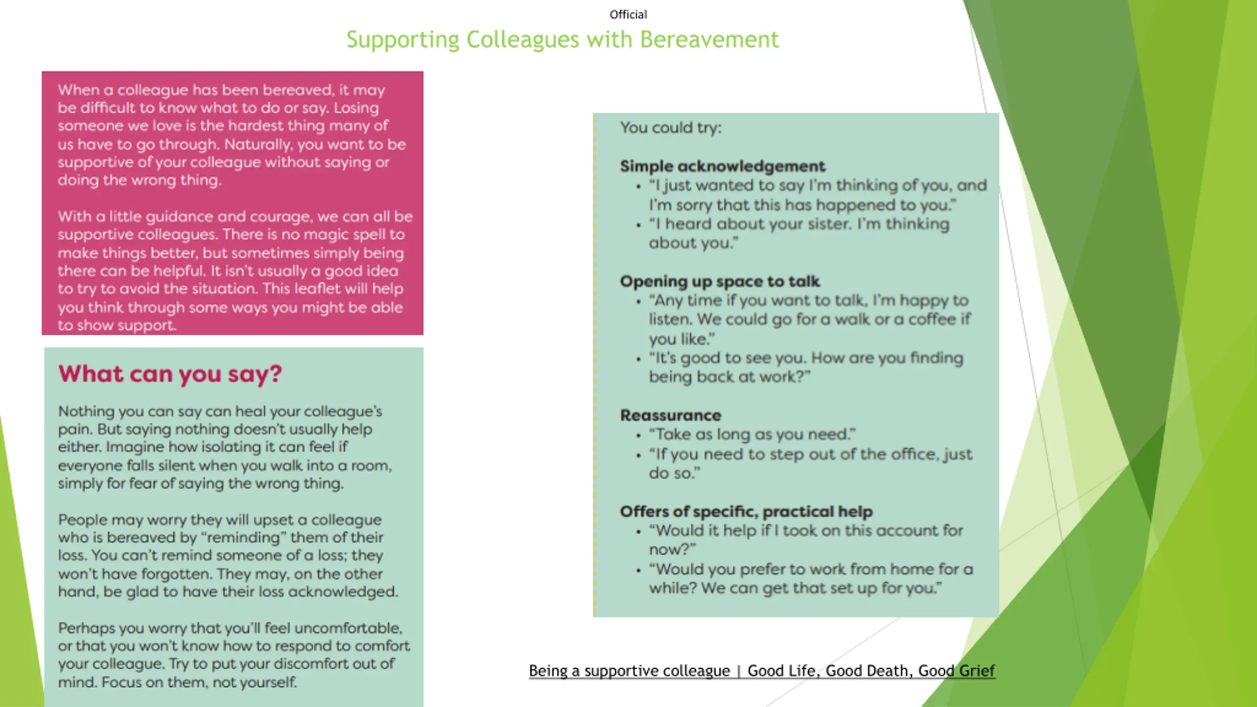 Official Supporting Colleagues with Bereavement Being a supportive colleague | Good Life, Good Death, Good Grief