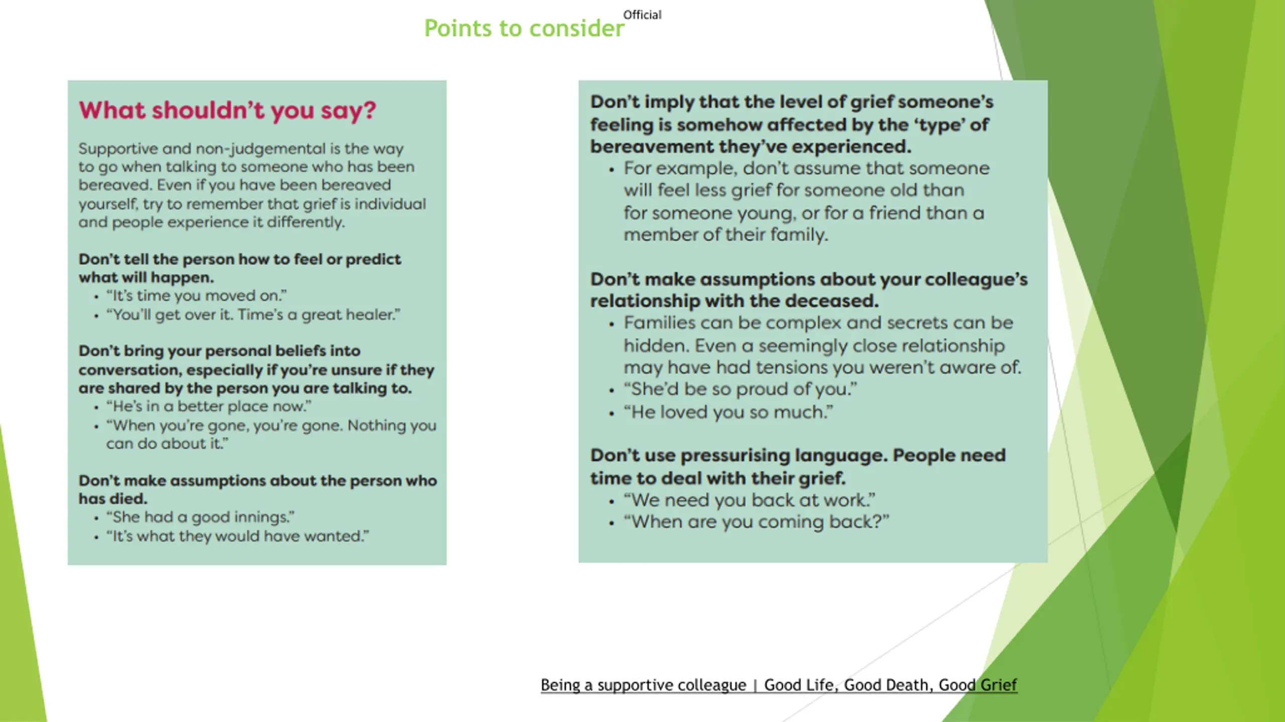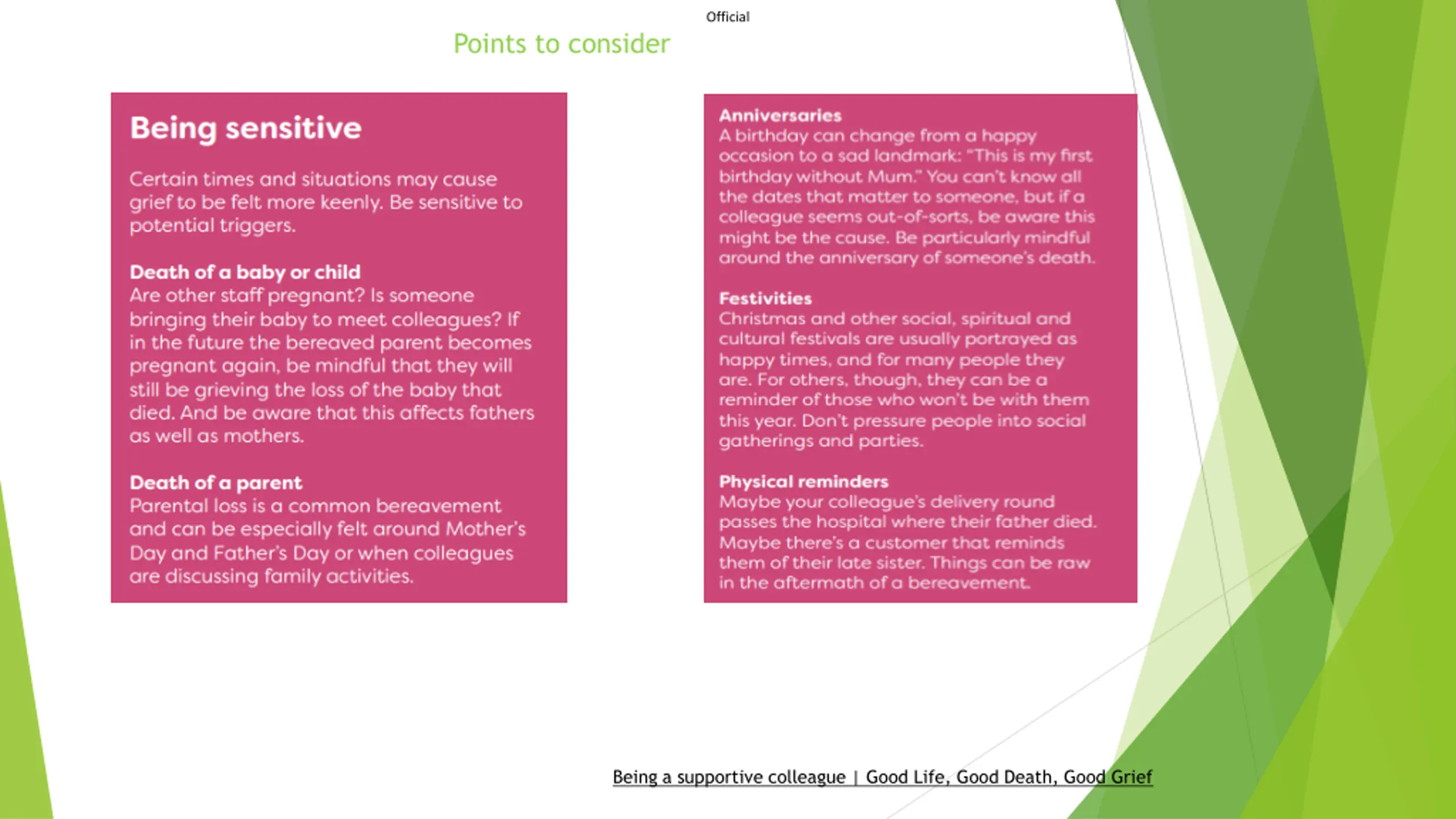 Official Points to consider Being a supportive colleague | Good Life, Good Death, Good Grief