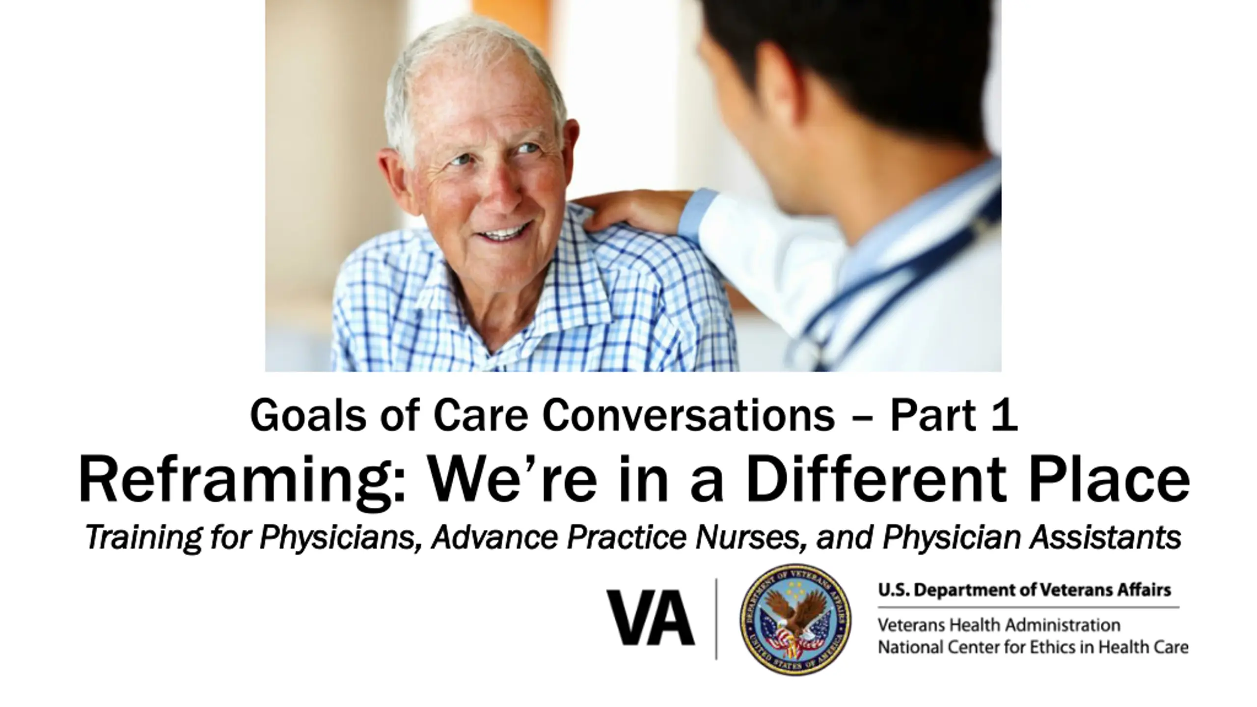 Goals of Care Conversations Part 1 Reframing: We re in a Different Place Training for Physicians, Advance Practice Nurses, and Physician Assistants Training for Physicians, Advance Practice Nurses, and Physician Assistants