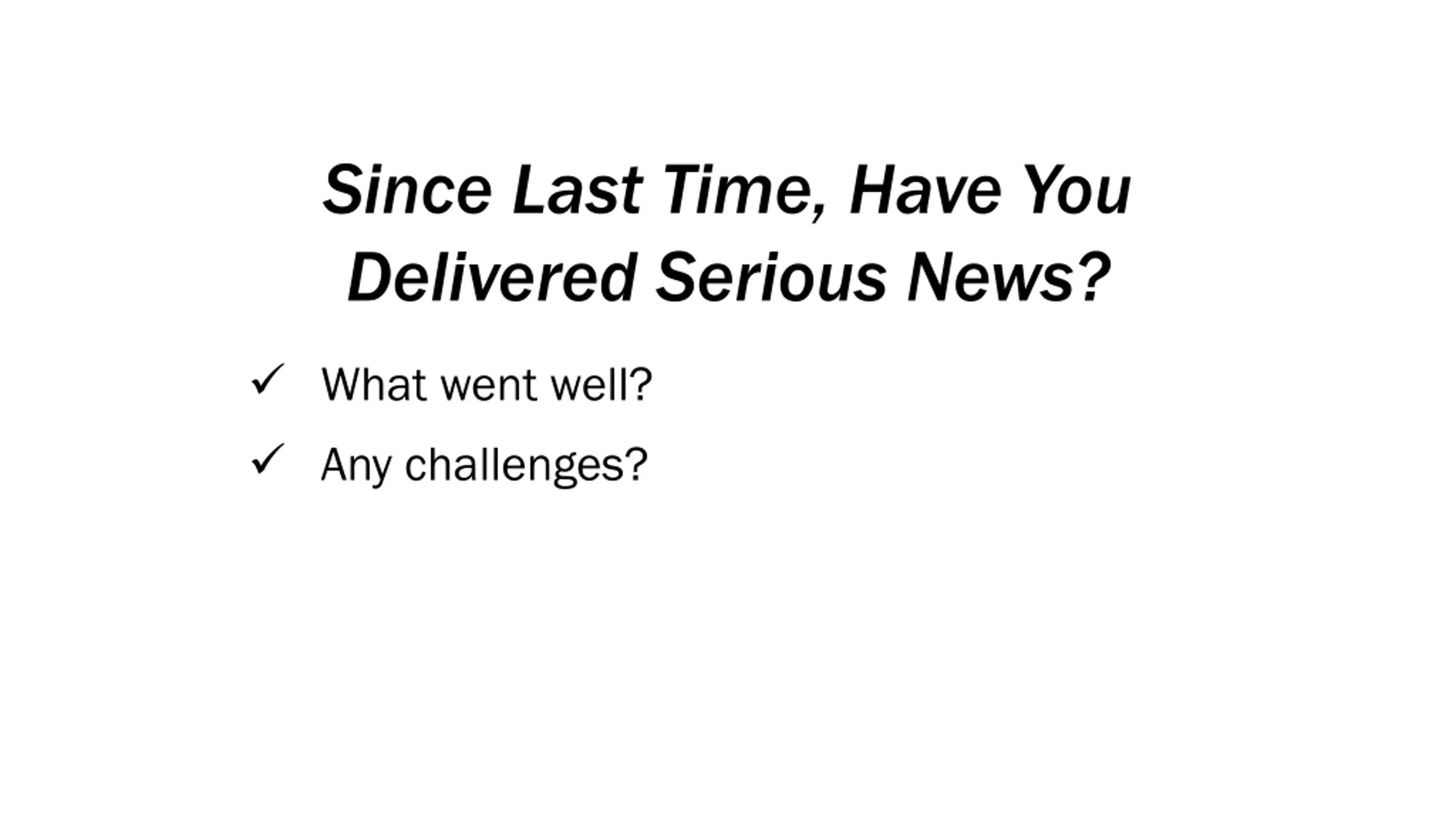 Since Last Time, Have You Delivered Serious News? What went well? Any challenges?