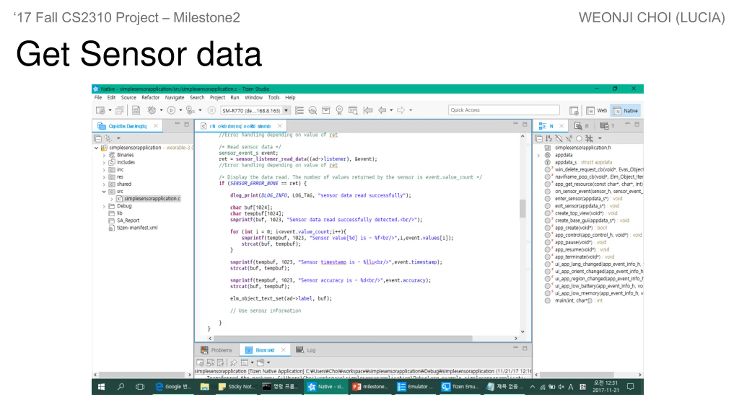 17 Fall CS2310 Project Milestone2 WEONJI CHOI (LUCIA) Get Sensor data