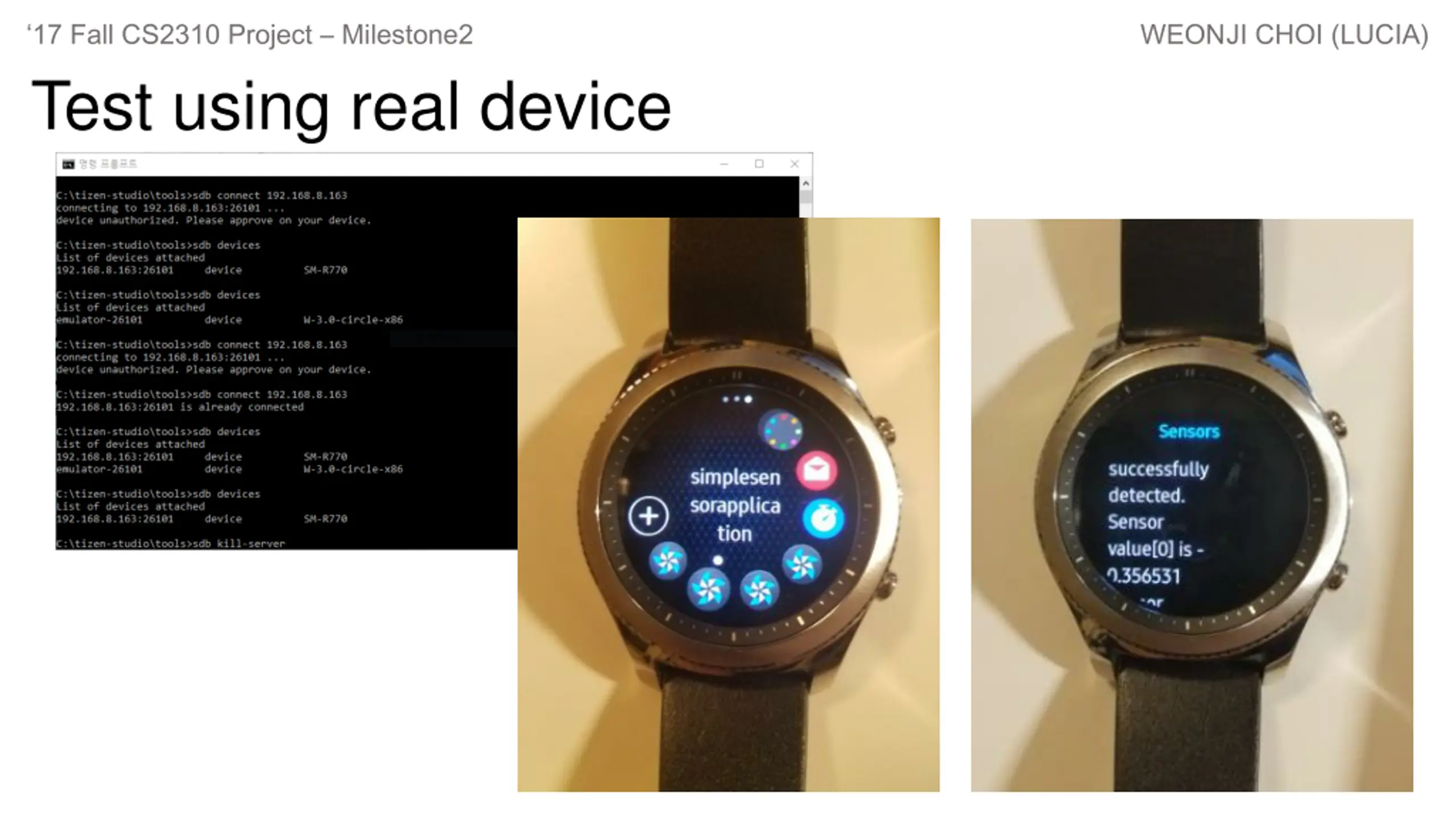 17 Fall CS2310 Project Milestone2 WEONJI CHOI (LUCIA) Test using real device