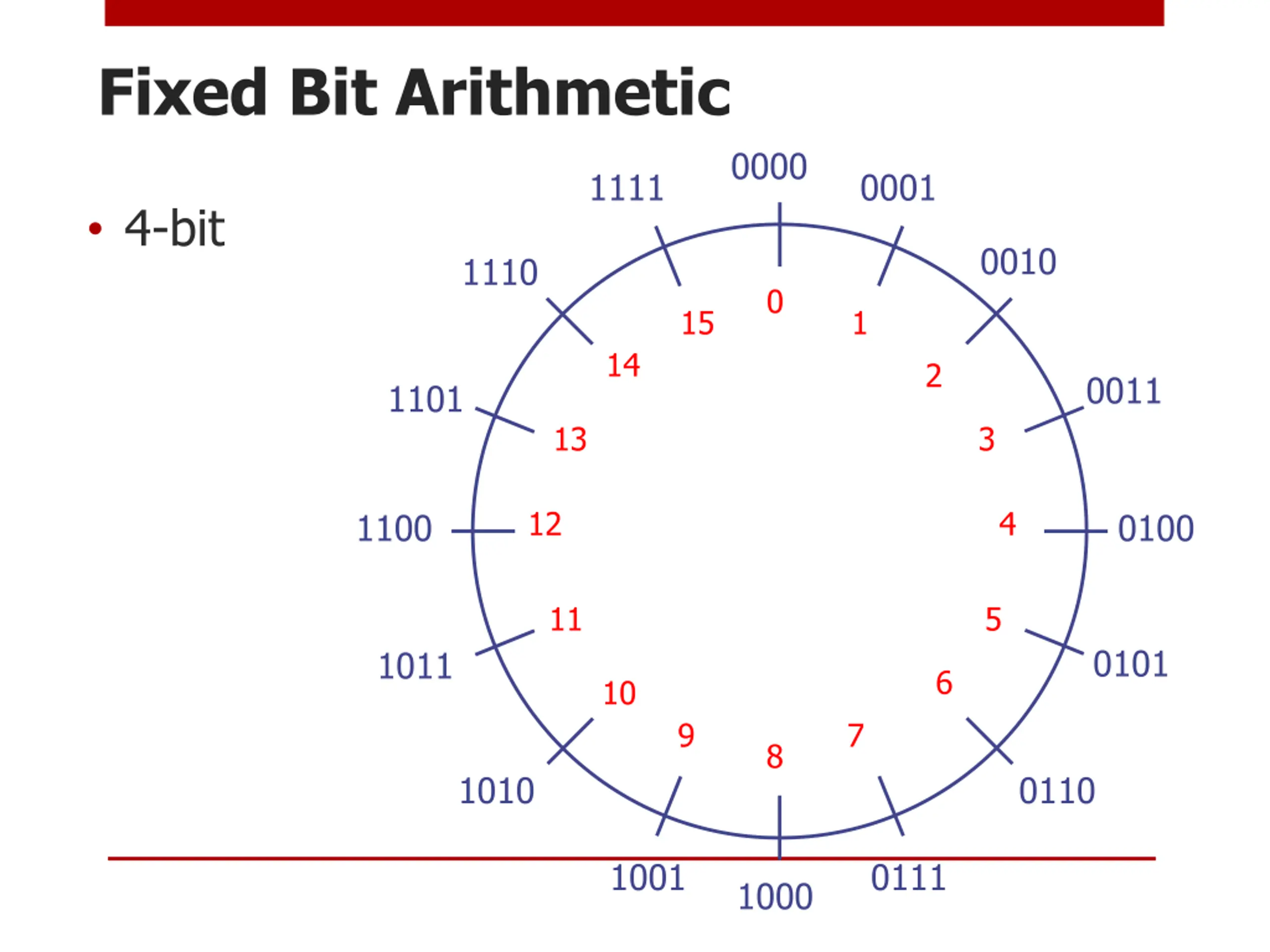 Fixed Bit Arithmetic 0000 1111 0001 4-bit 0010 1110 0 15 1 14 2 0011 1101 13 3 12 4 1100 0100 11 5 0101 1011 6 10 9 7 8 1010 0110 1001 0111 1000
