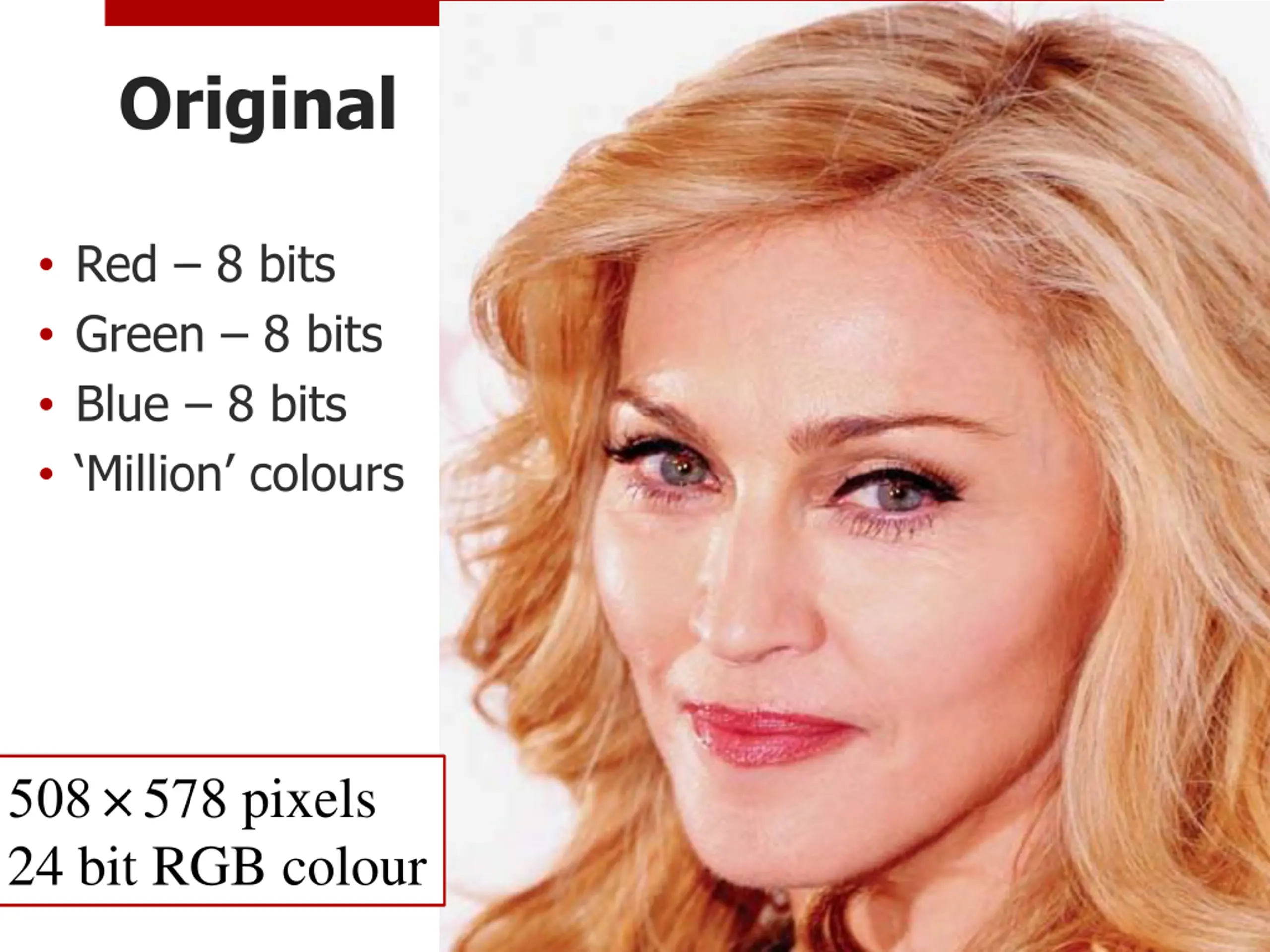 Original Red 8 bits Green 8 bits Blue 8 bits Million colours 508 578 pixels 24 bit RGB colour