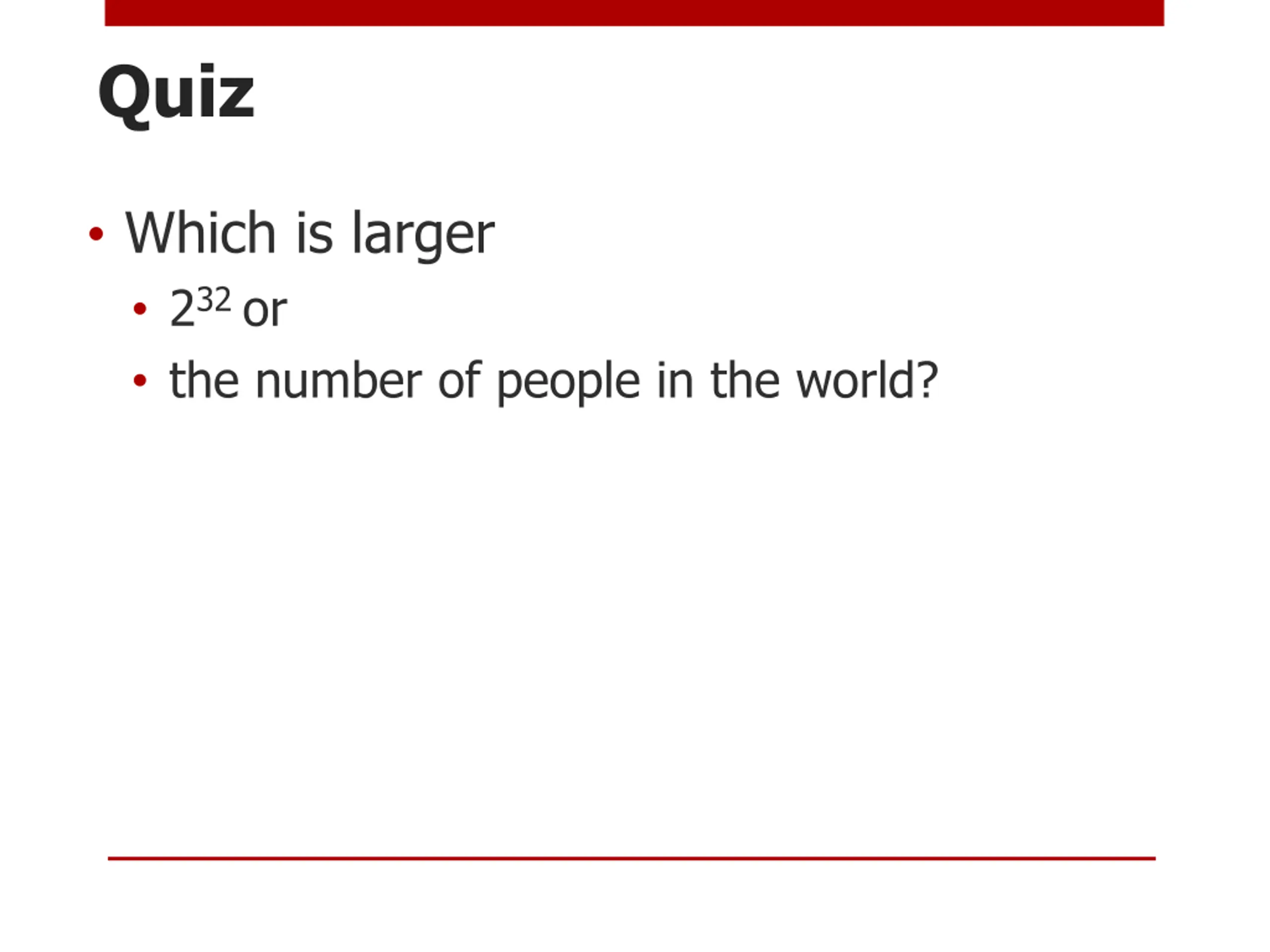 Quiz Write out powers of 2, up to 28 (then 216) Convert 101000112 to decimal Convert 011111112 to decimal What is the next number after (the 10 digit number) 11111111112 in base 10?