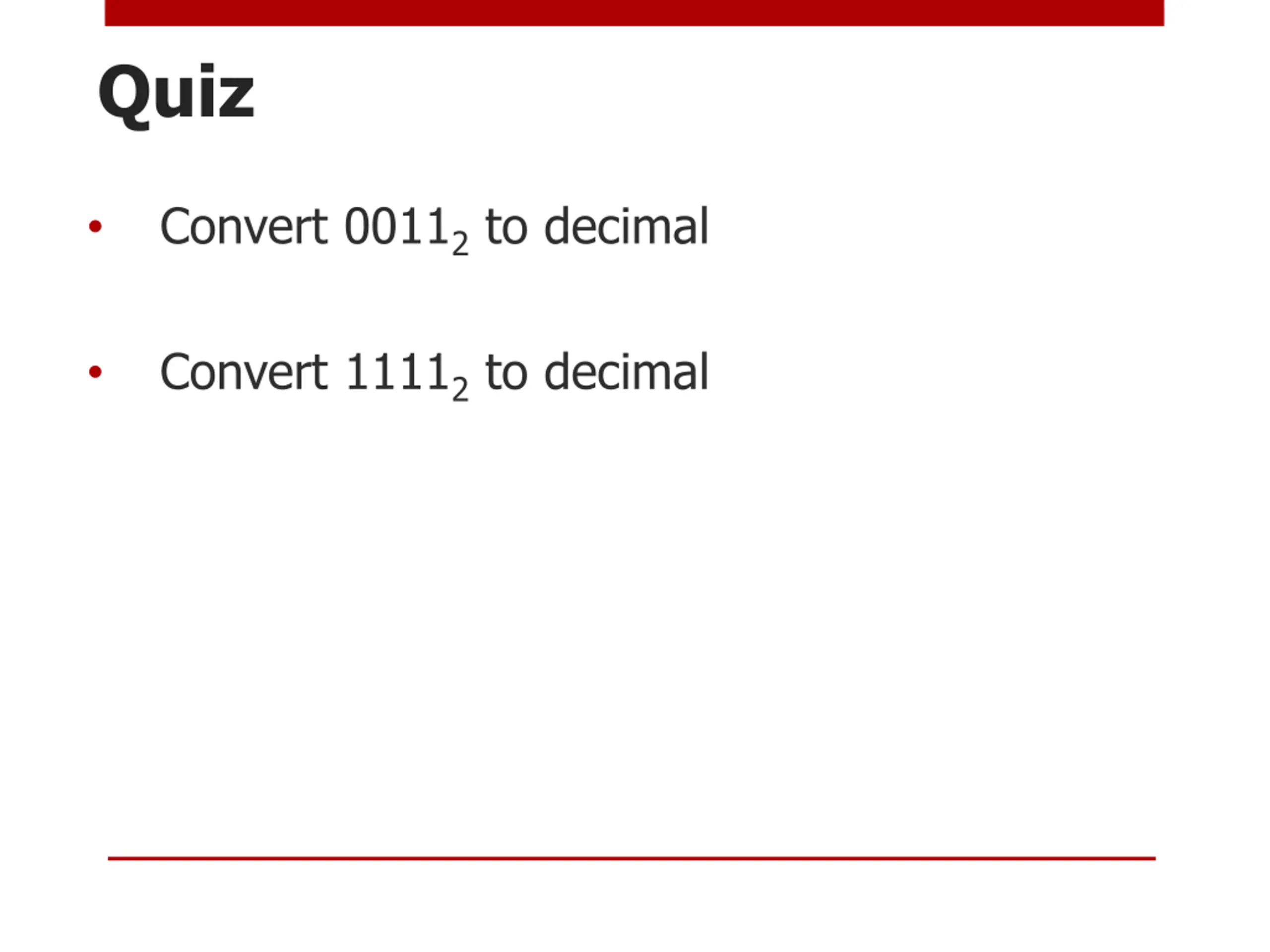 Quiz Convert 00112 to decimal Convert 11112 to decimal
