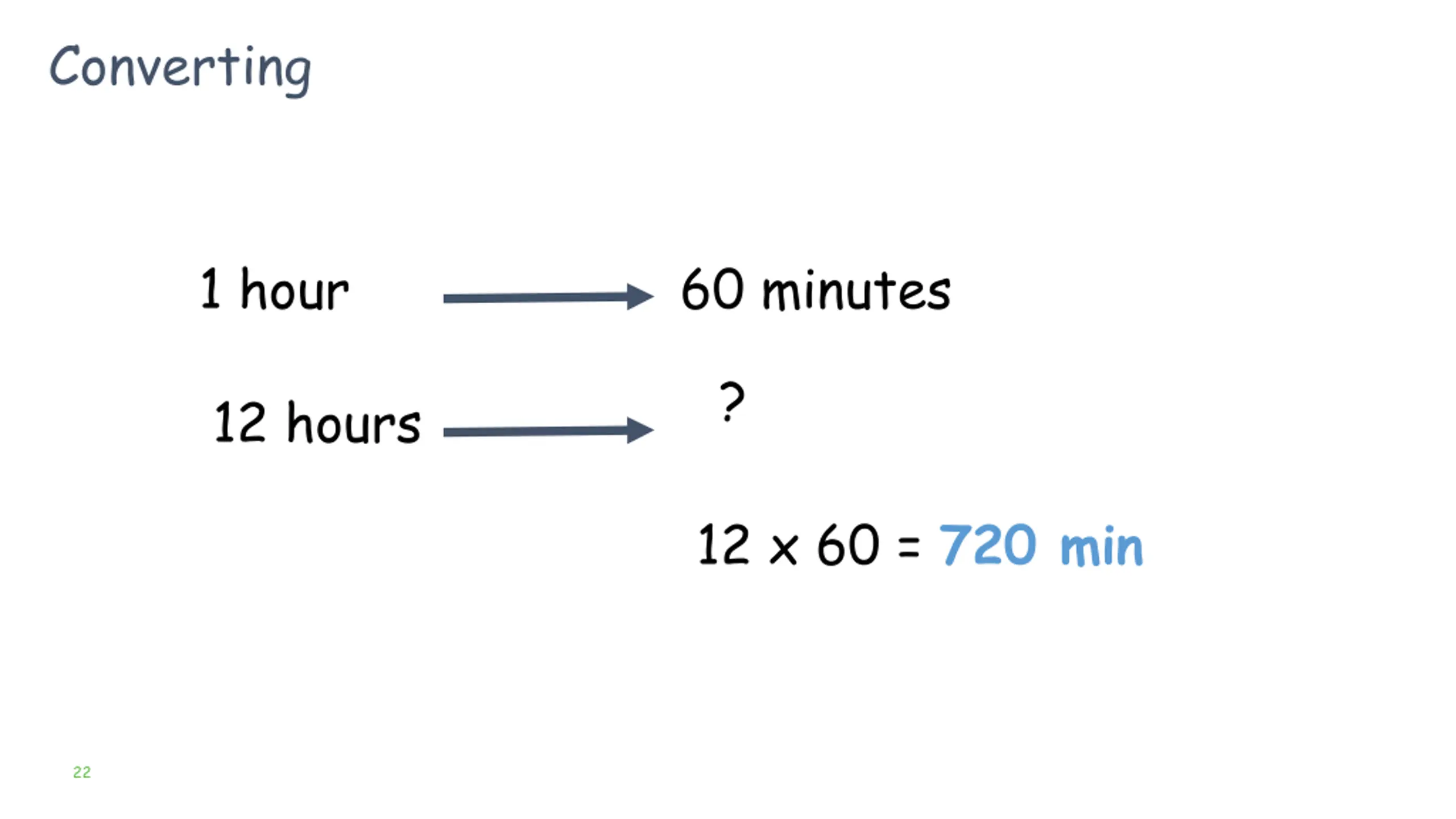 Converting 1 hour 60 minutes ? 12 hours 12 x 60 = 720 min 22