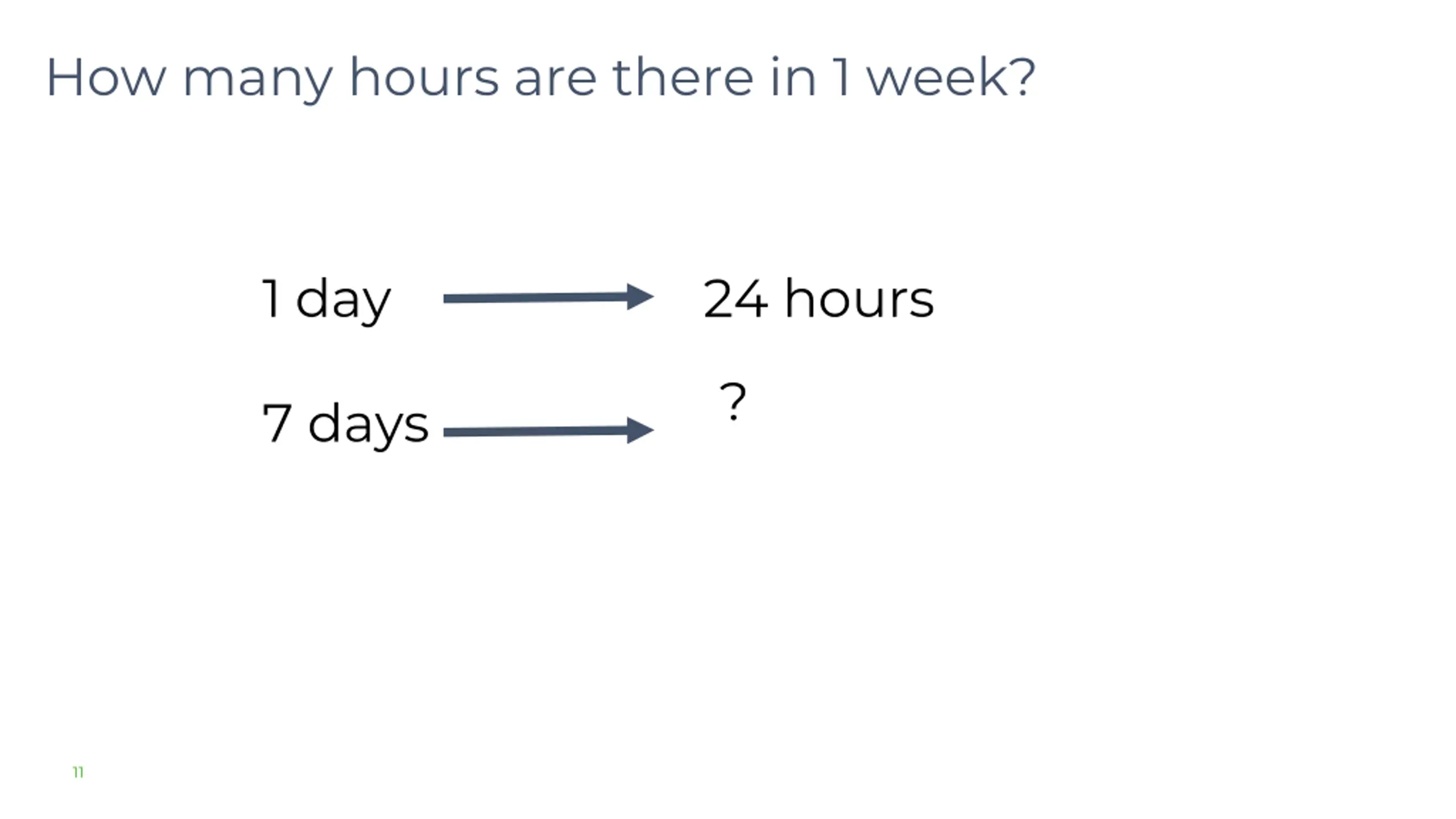 How many hours are there in 1 week? 1 day 24 hours ? 7 days 11