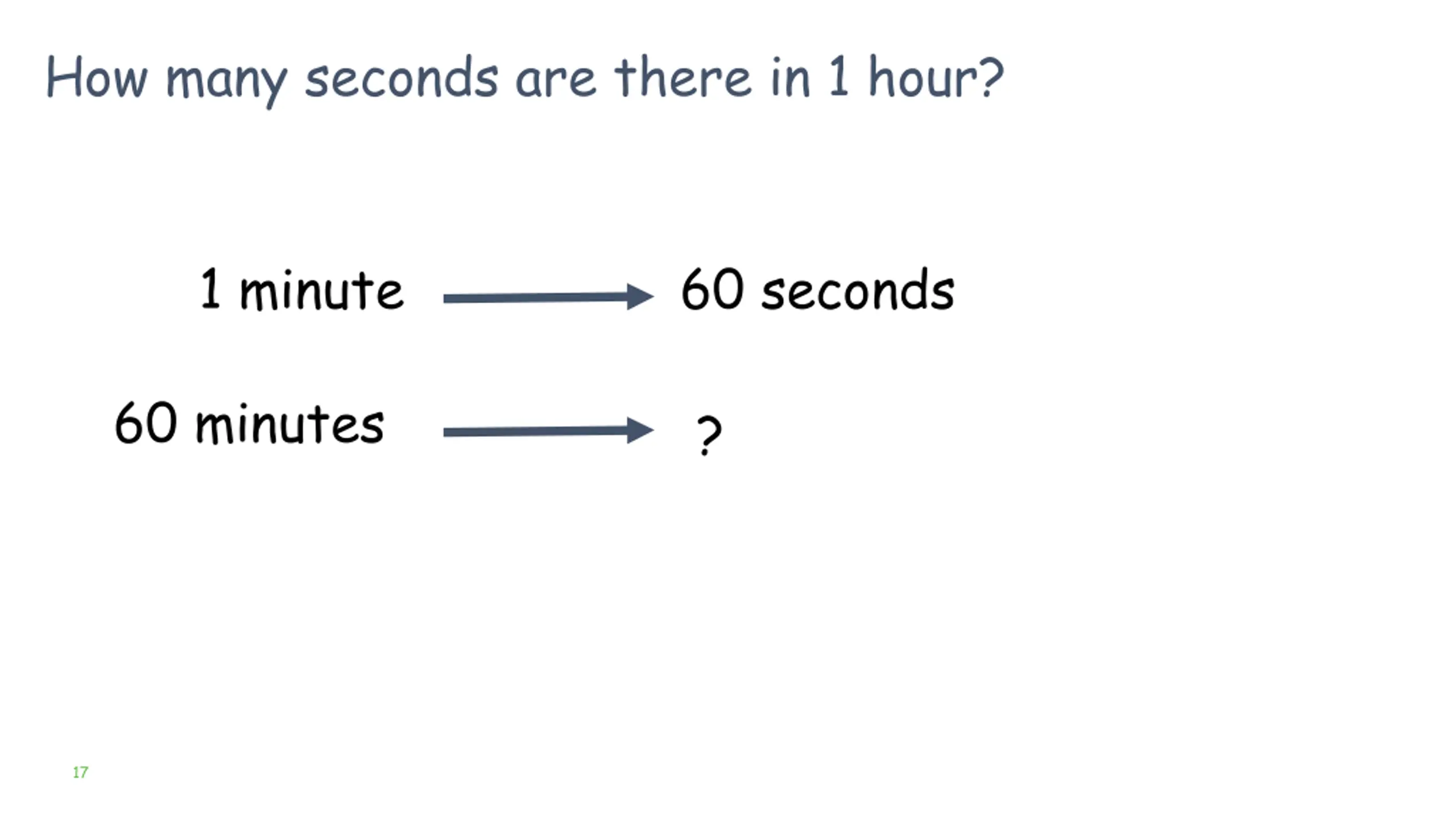 How many seconds are there in 1 hour? 1 minute 60 seconds 60 minutes ? 17