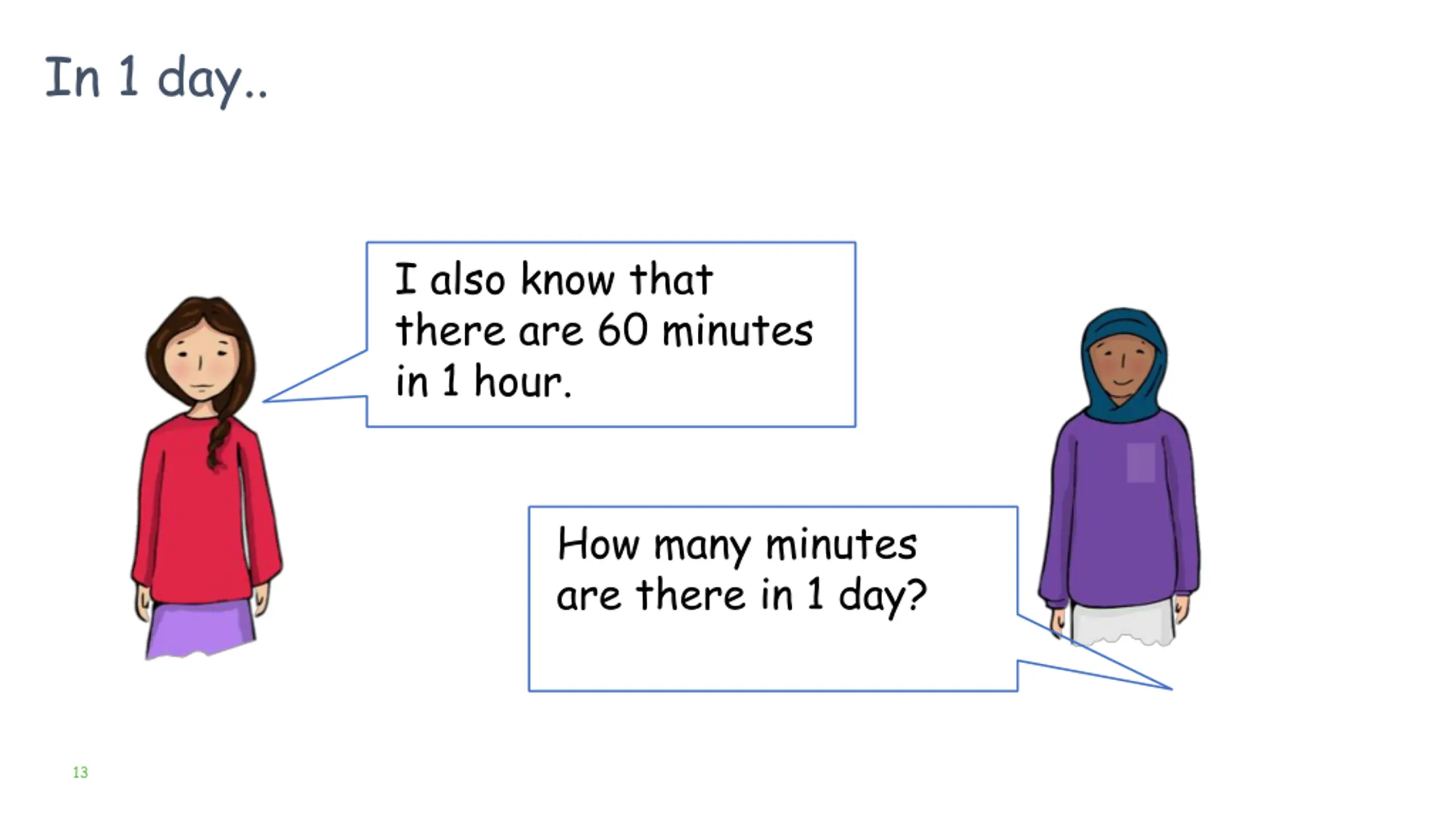 In 1 day.. I also know that there are 60 minutes in 1 hour. How many minutes are there in 1 day? 13