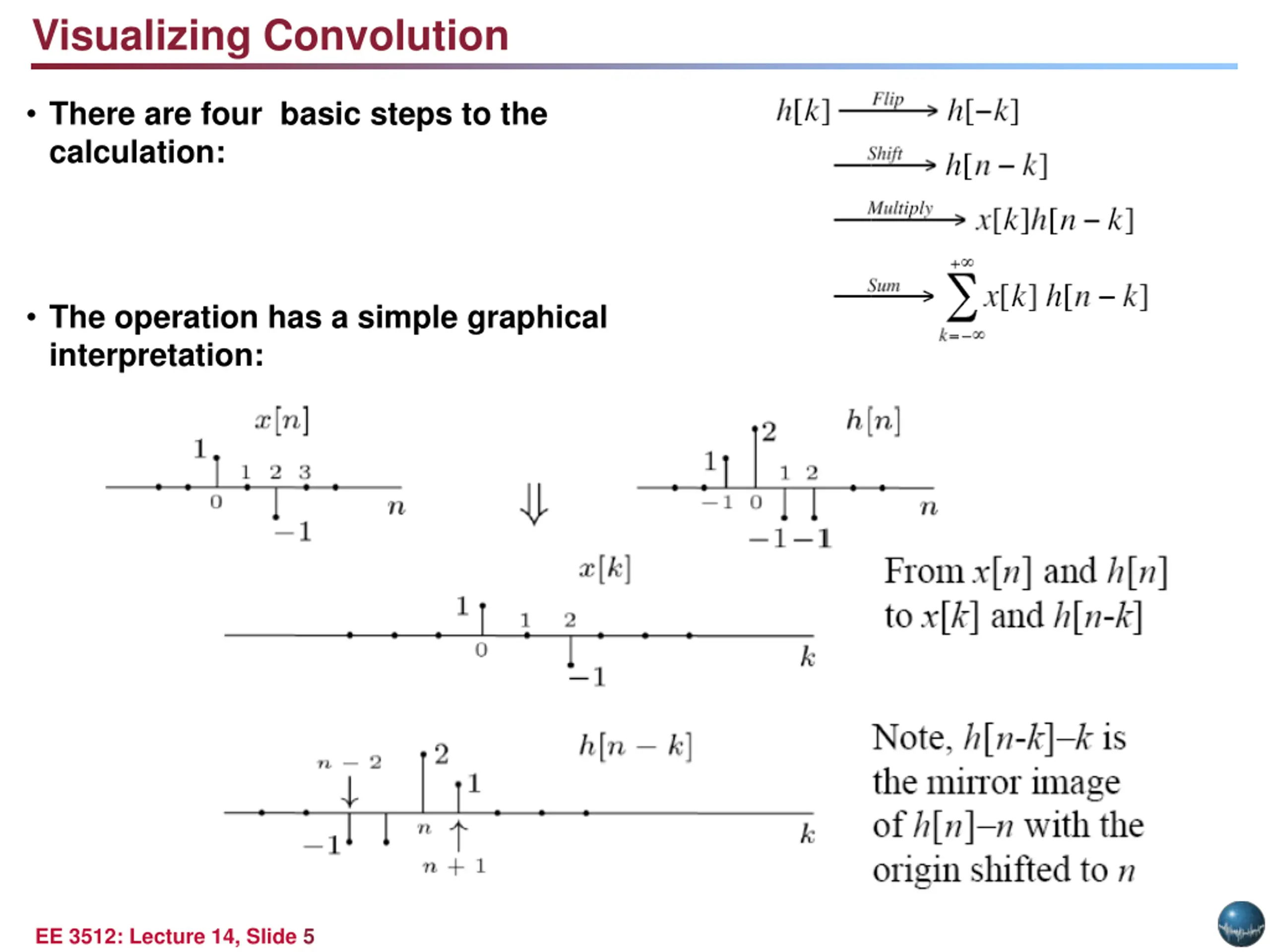 Visualizing Convolution There are four basic steps to the calculation: The operation has a simple graphical interpretation: EE 3512: Lecture 14, Slide 5