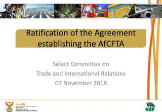 Outstanding Actions Once SA ratify the agreement the following actions will take place: Establishment of the Joint Working Committee (JWC) Action plan will be drafted and identify the possible project for implementation. Possible visits by both sides to have an overview each other s agricultural sectors.