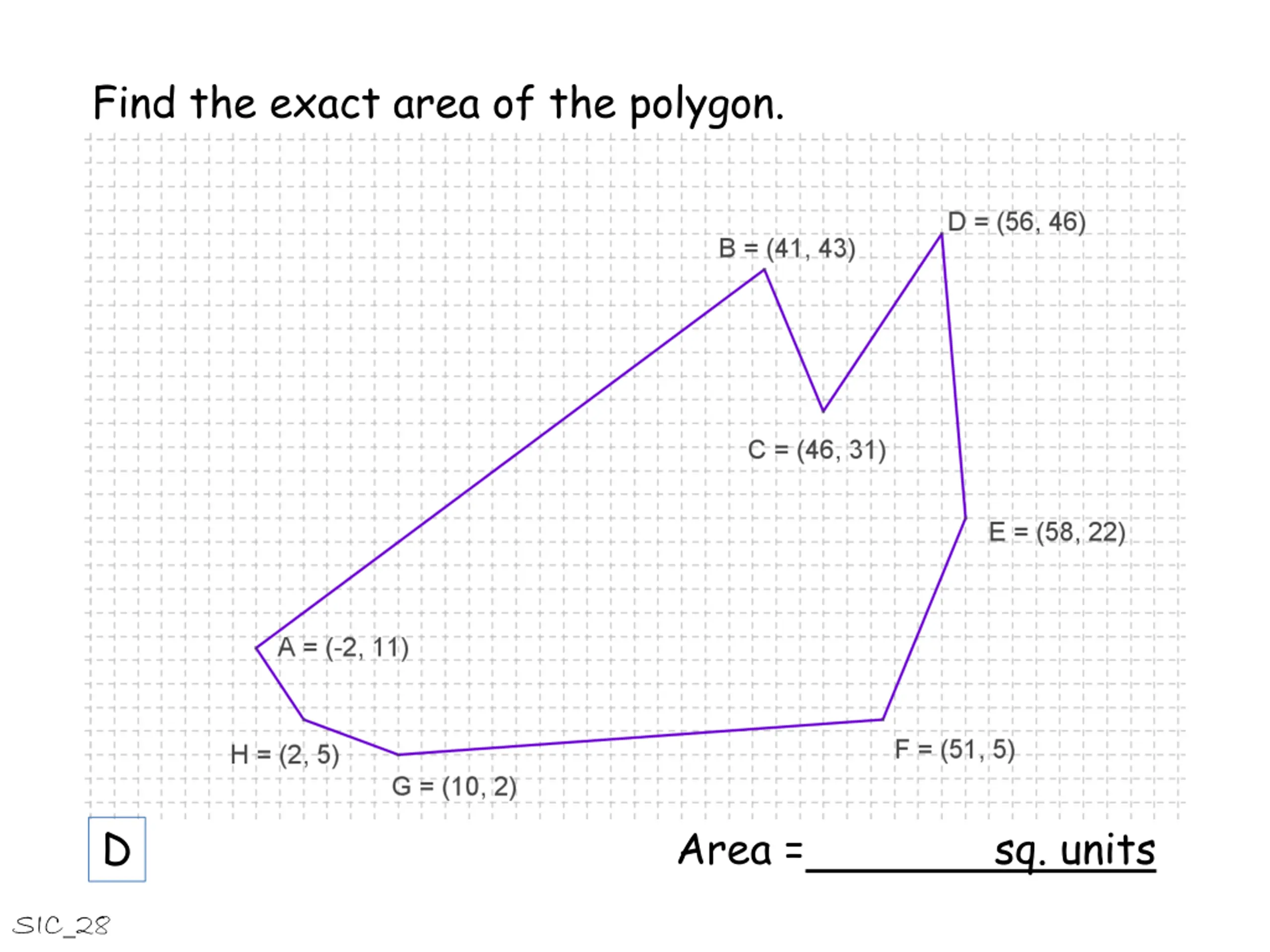 Find the exact area of the polygon. Area = sq. units D SIC_28