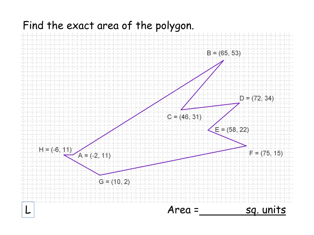 Find the exact area of the polygon. Area = sq. units L SIC_28