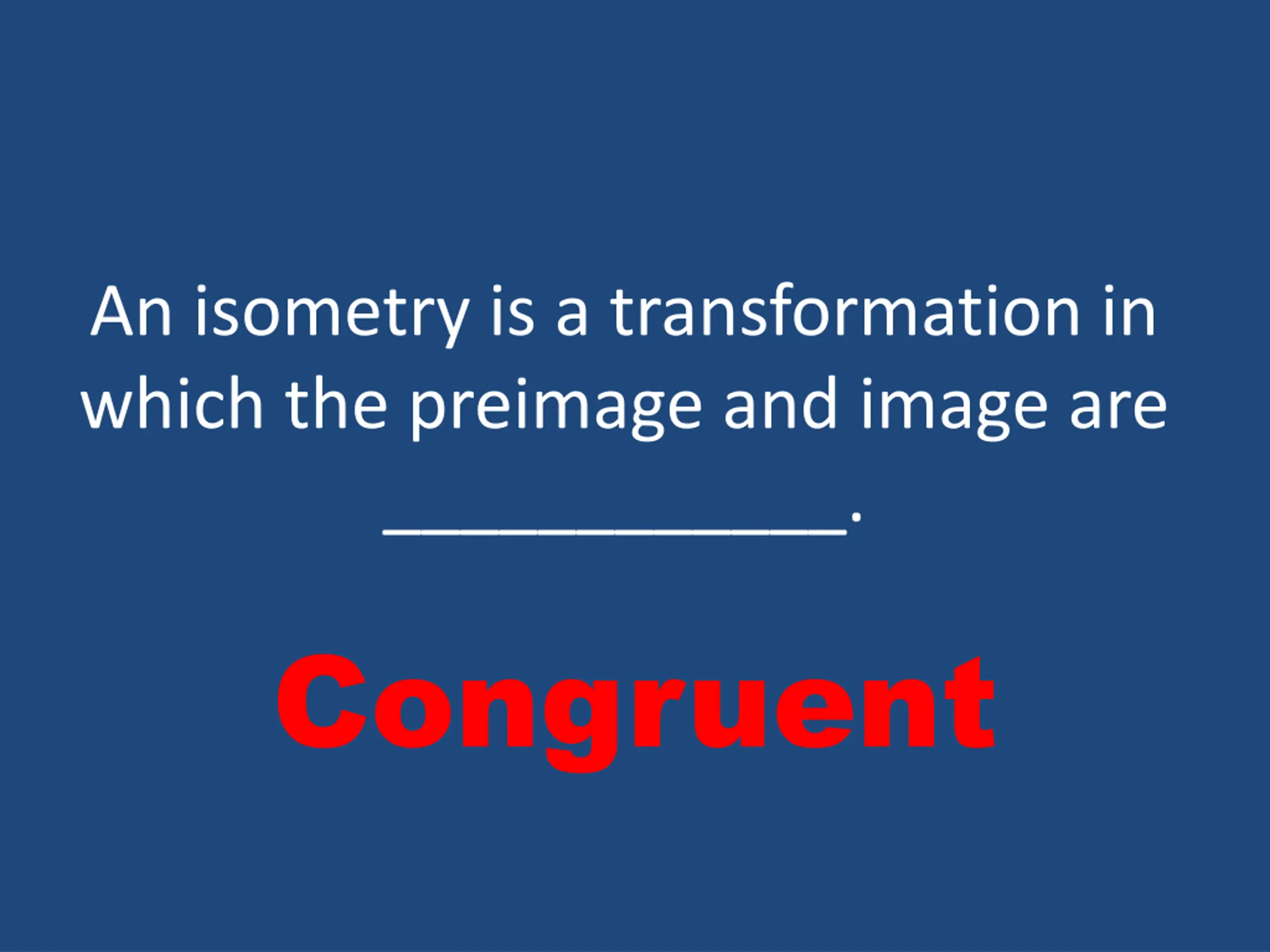 An isometry is a transformation in which the preimage and image are ____________. Congruent