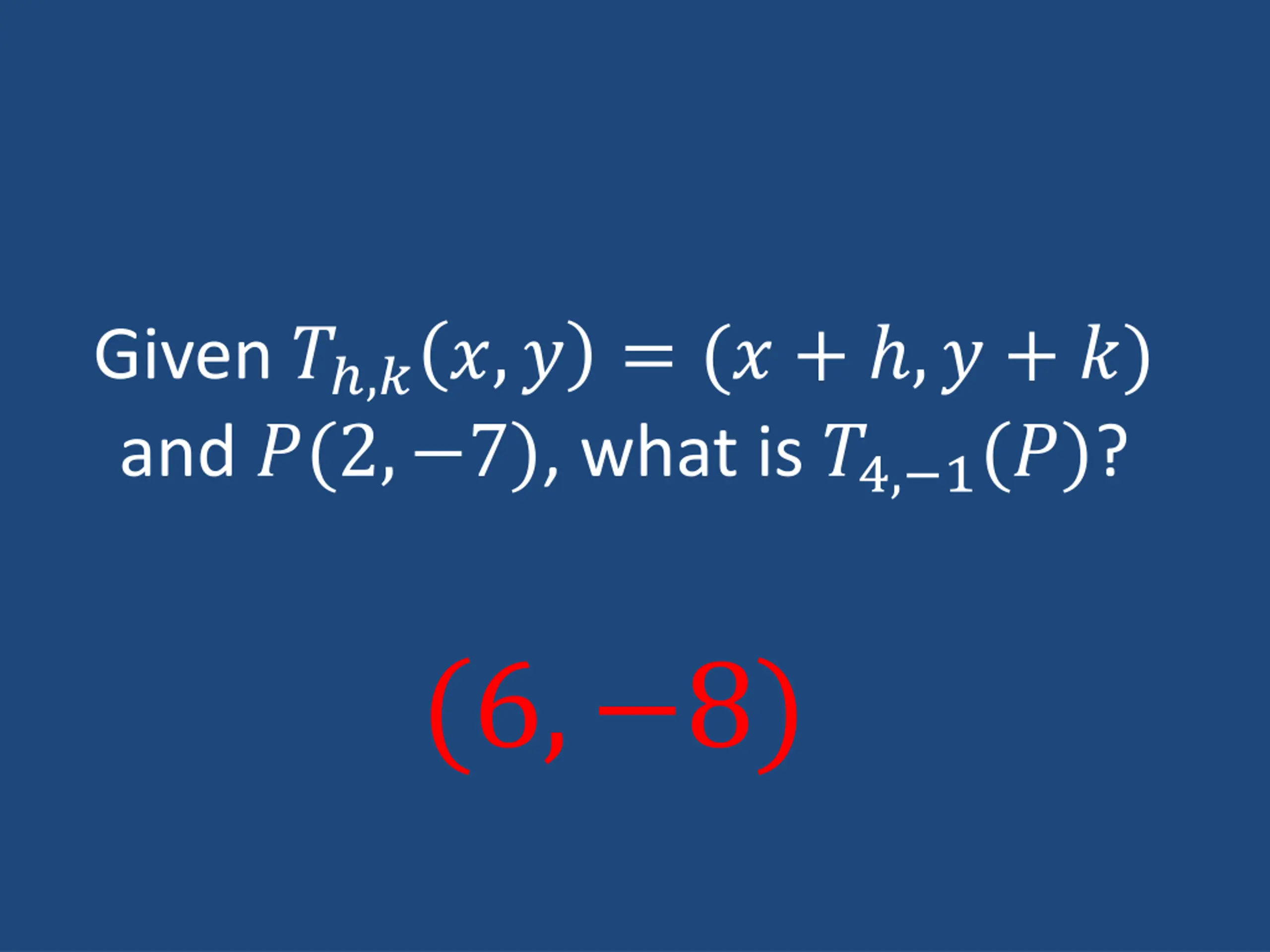 Given ?,??,? = (? + ,? + ?) and ?( 4, 3), what is ? 2,1(?)? ( 6, 2)