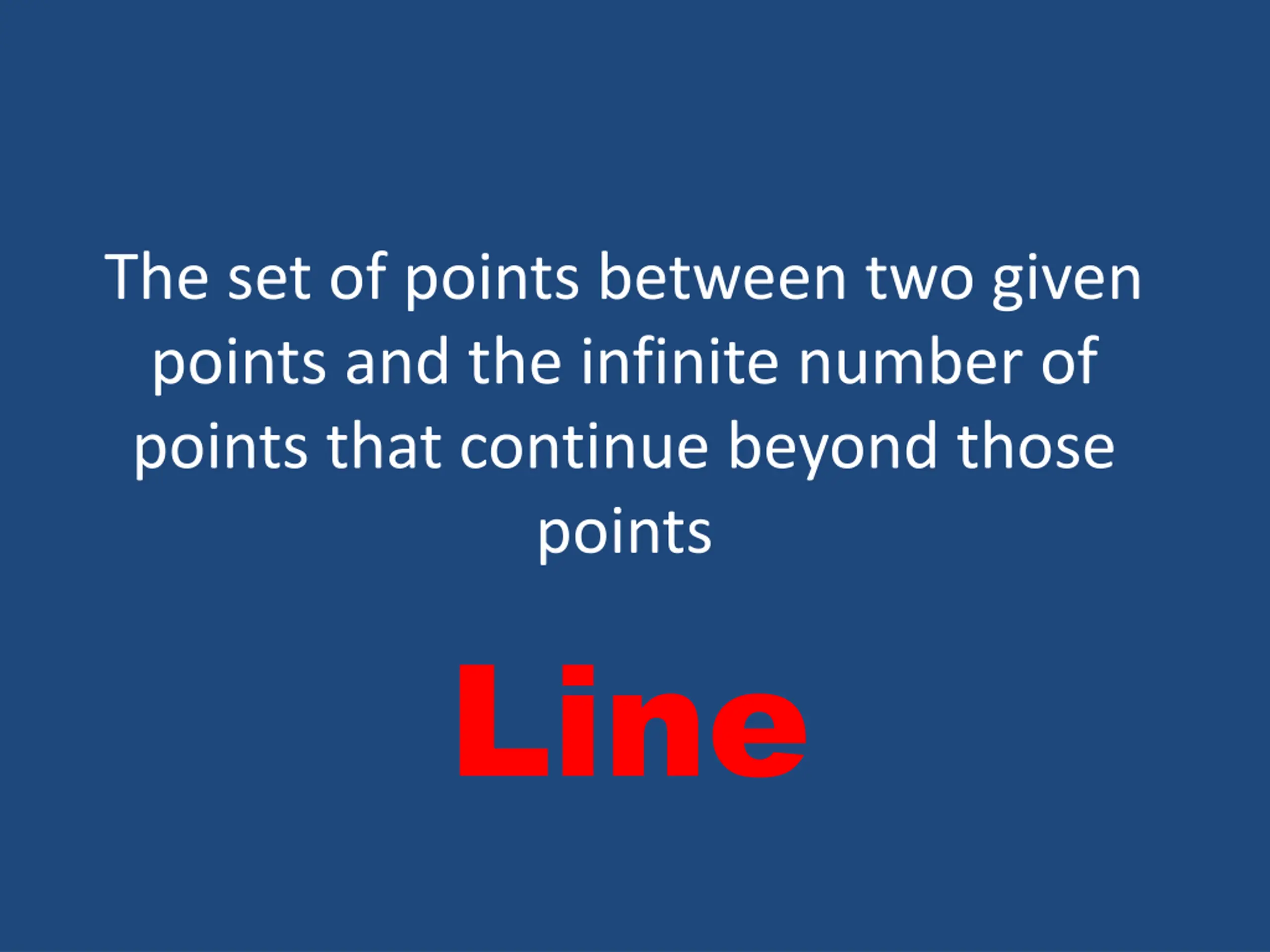 The set of points between two given points and the infinite number of points that continue beyond those points Line